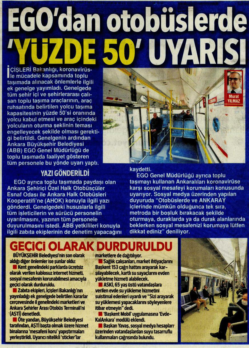 Hürriyet Ankara / 26.03.2020 EGO'dan otobüslerde 'yüzde 50' uyarısı