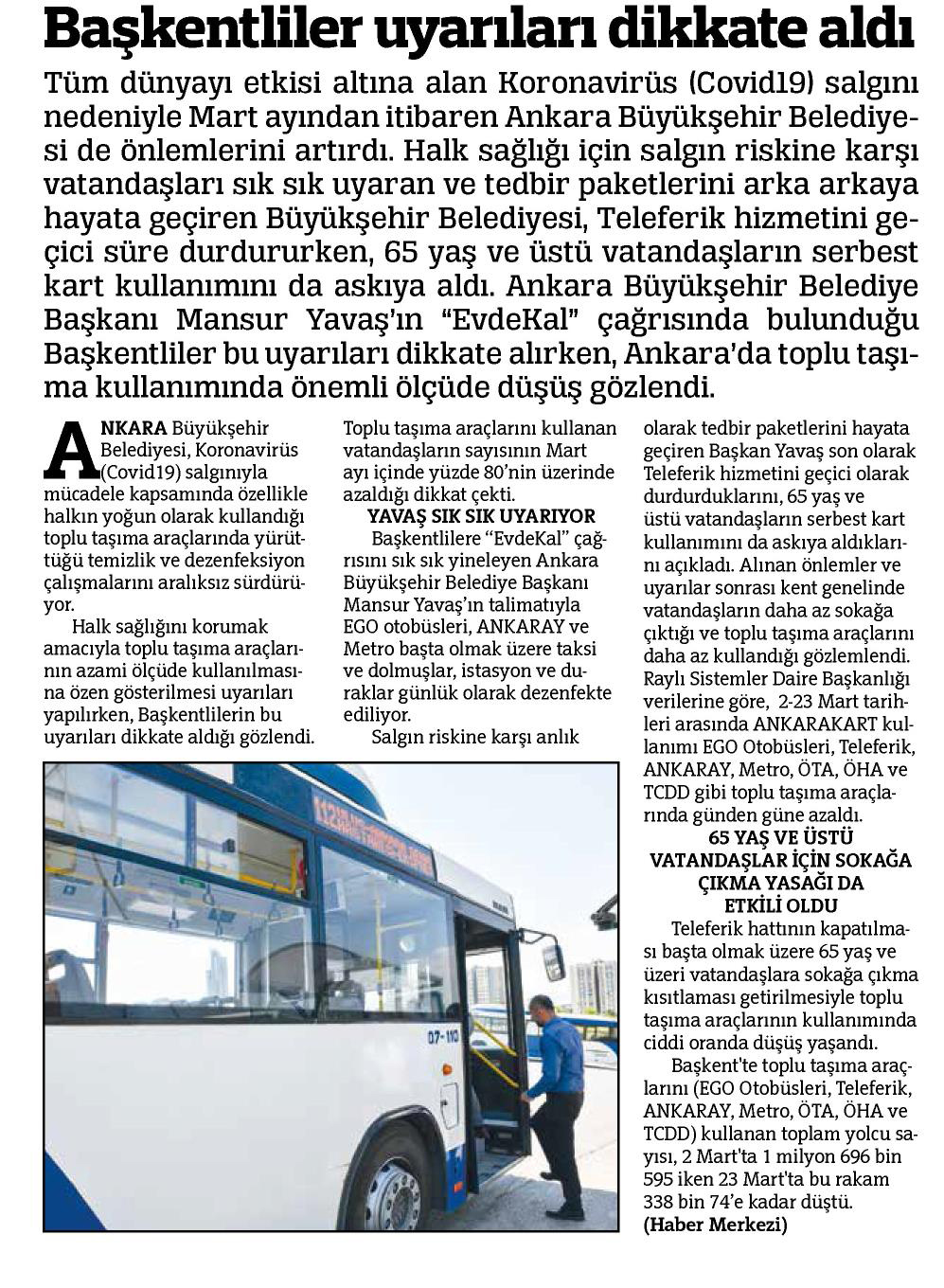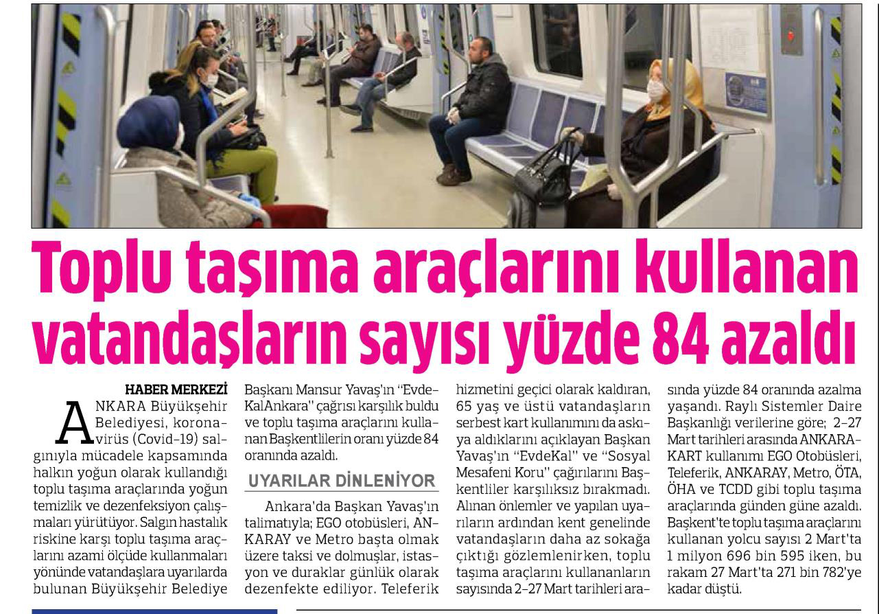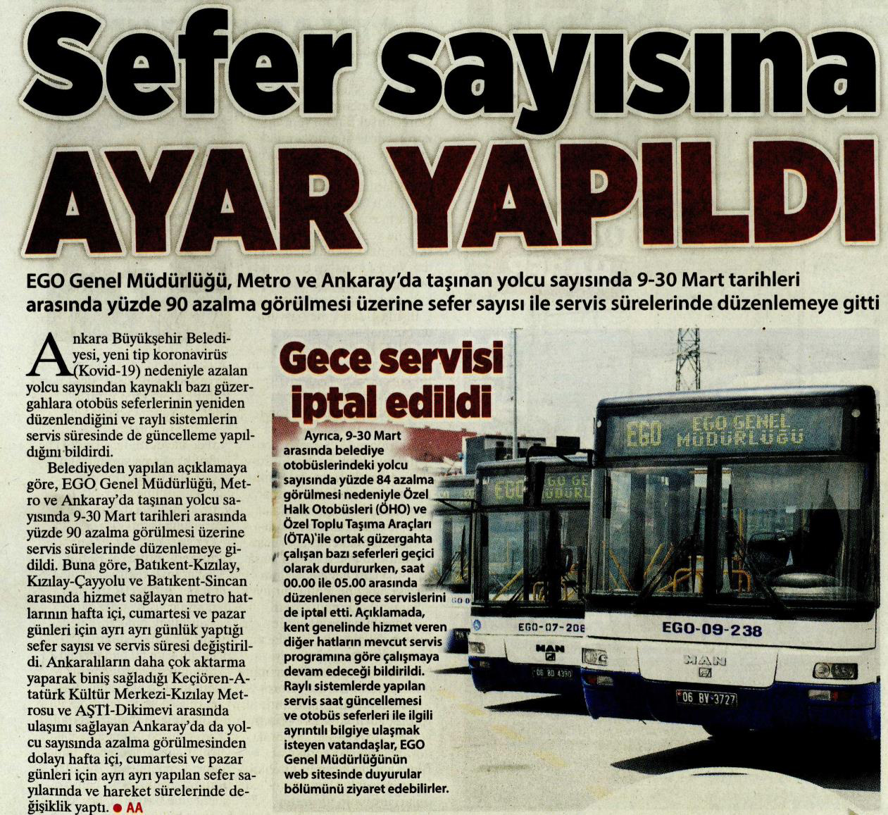 Milliyet Ankara / 03.04.2020 Sefer sayısına ayar yapıldı