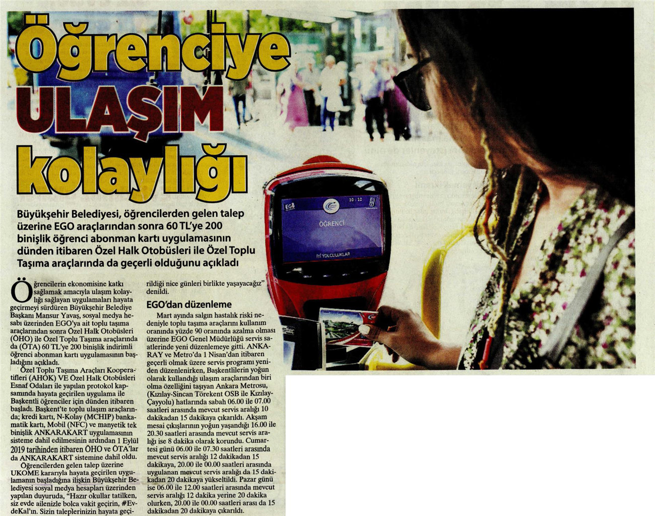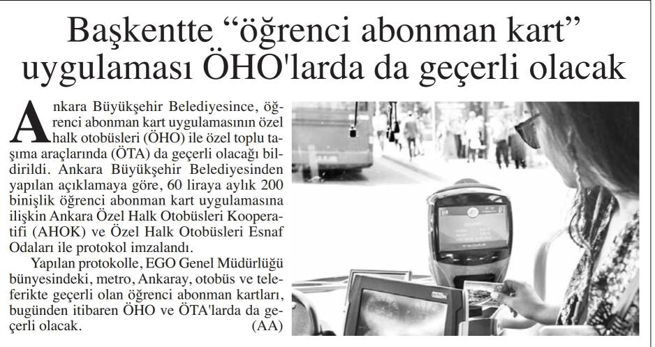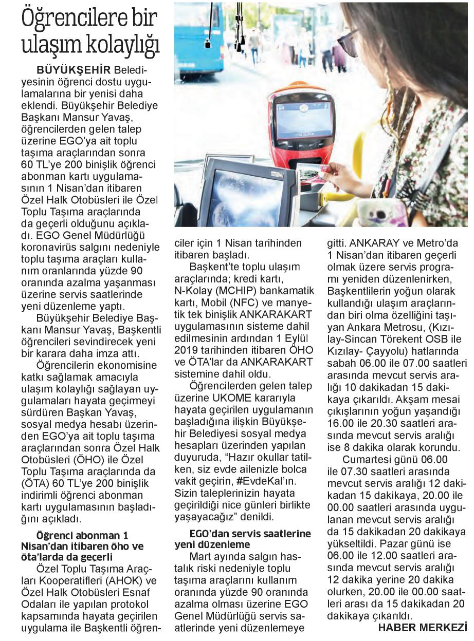 Başkent Gazetesi / 02.04.2020 Başkent’te öğrenci abonmankart ÖHO’larda da geçerli