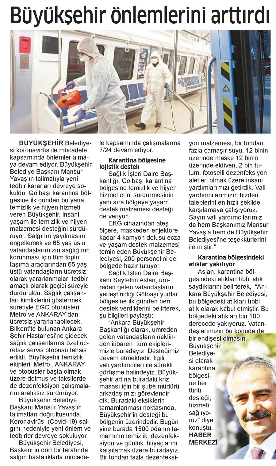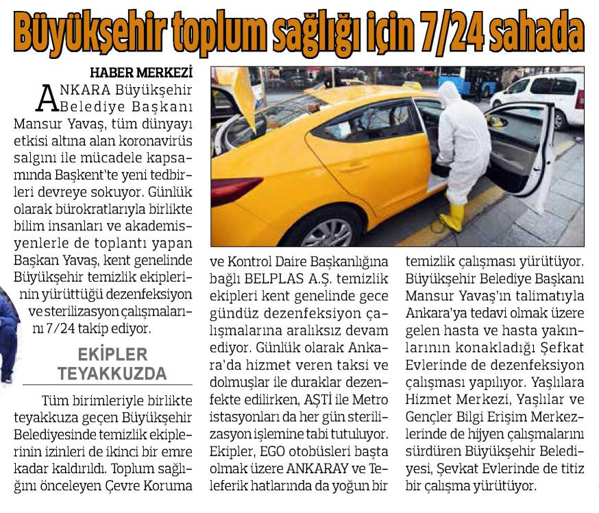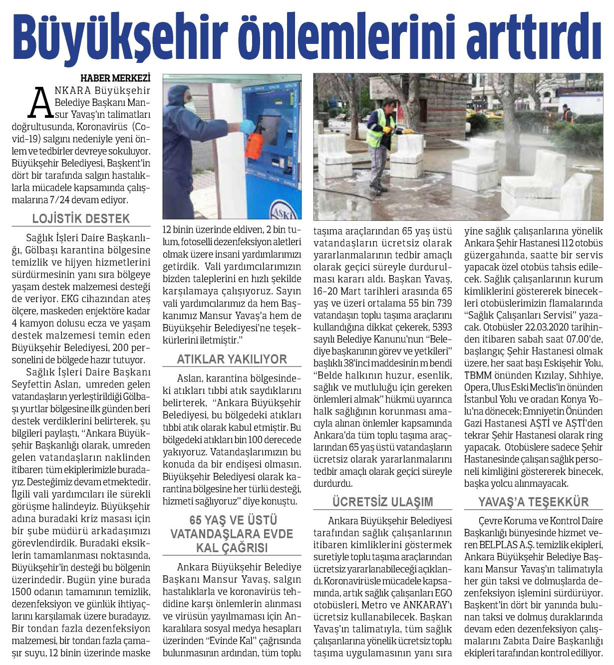 Başkent Gazetesi / 21.03.2020 Büyükşehir’den koronavirüsle mücadelede yeni önlemler