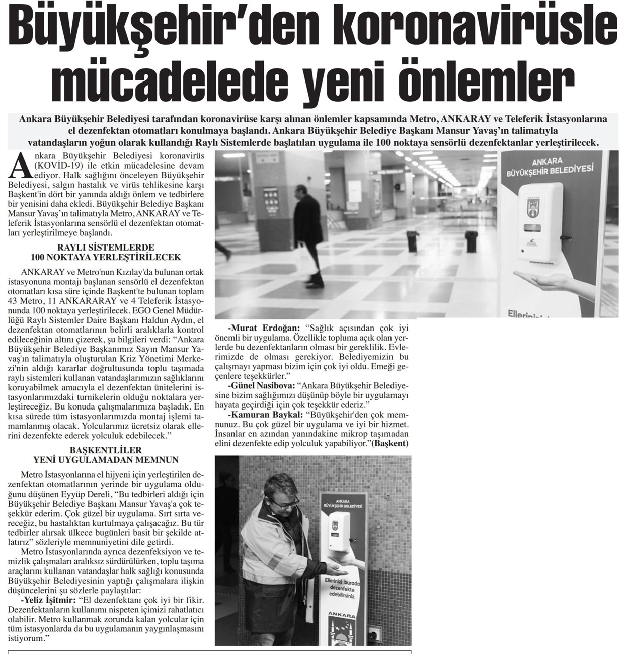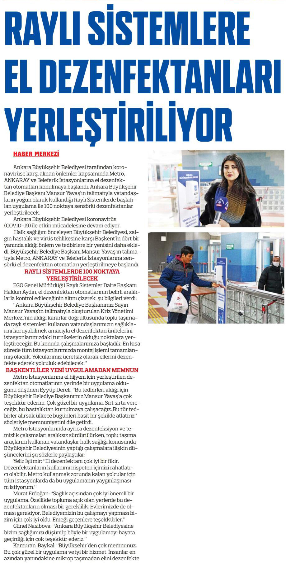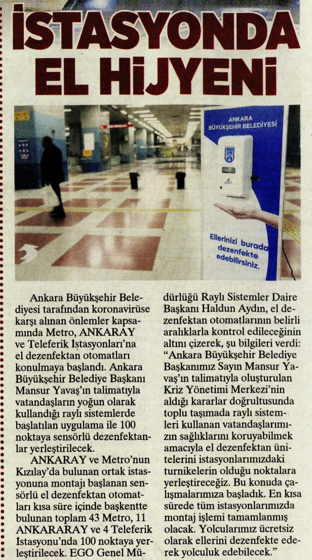 Milliyet Ankara / 21.03.2020 İstasyonda el hijyeni