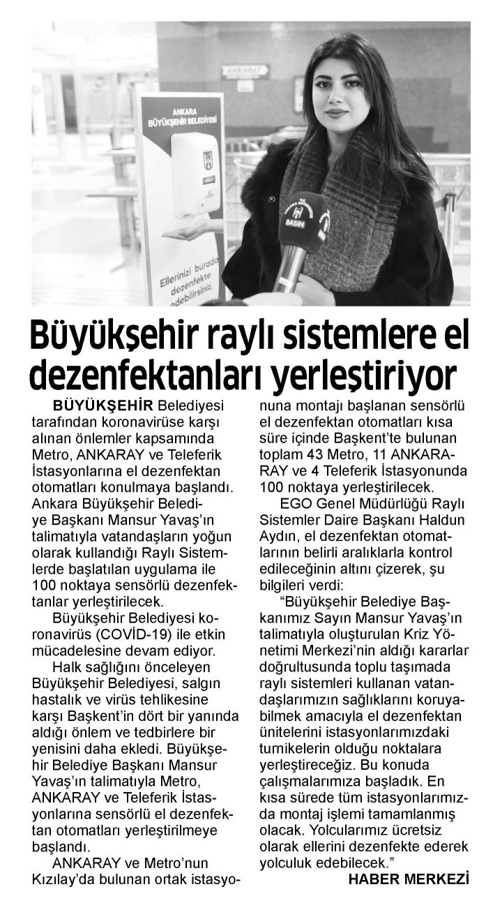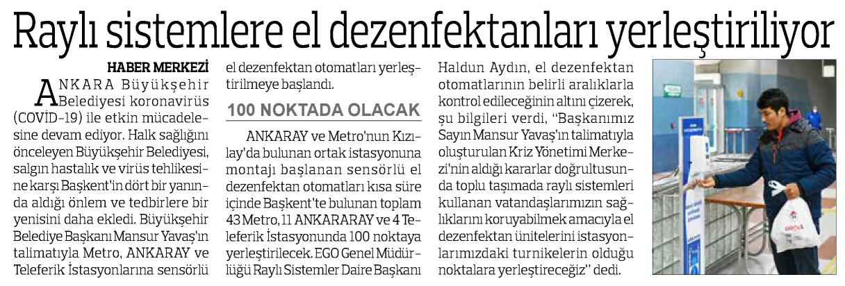 24 Saat / 21.03.2020 Başkent’te raylı sistemlere el dezenfektanları