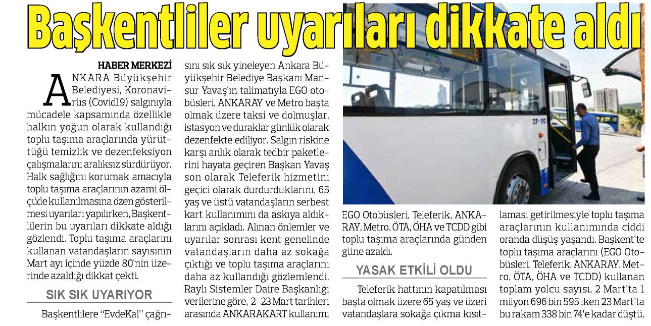 Hürriyet Ankara / 25.03.2020 Uyarılar işe yaradı toplu taşıma azaldı