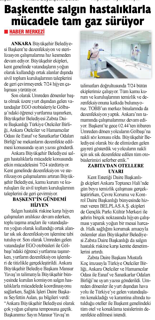 Zafer / 17.03.2020 Başkentte salgın hastalıklarla mücadele tam gaz sürüyor
