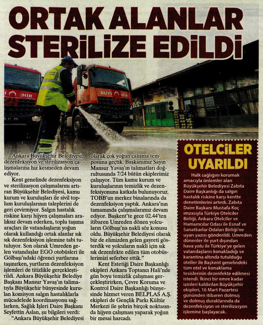 Milliyet Ankara / 17.03.2020 Ortak alanlar sterilize edildi