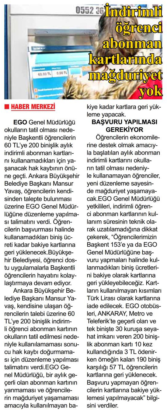 Zafer / 18.03.2020 İndirimli öğrenci abonman kartlarında mağduriyet yok