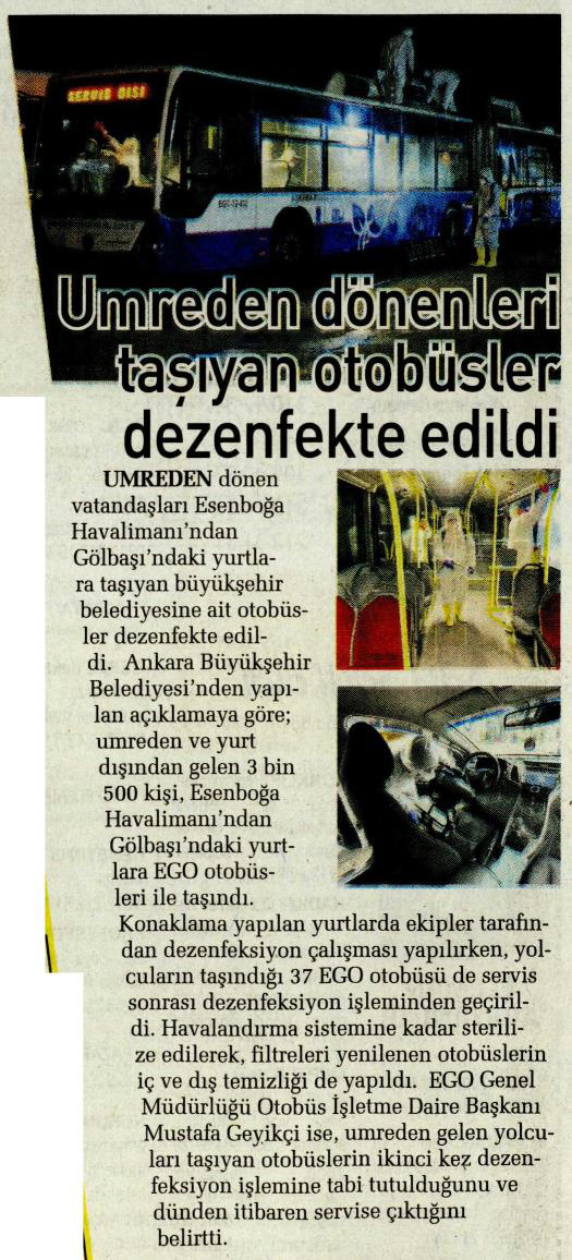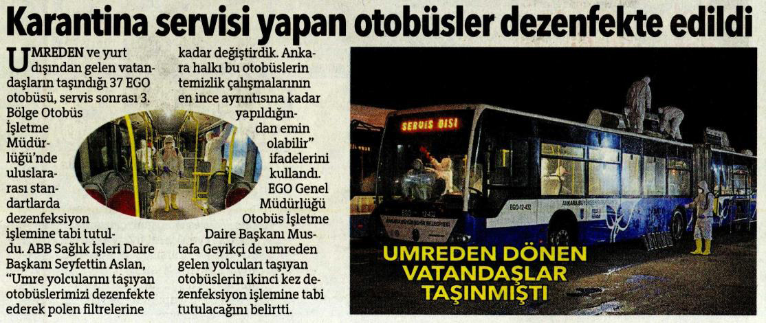 Akşam / 17.03.2020 Umrecileri taşıyan 37 EGO otobüsü dezenfekte edildi