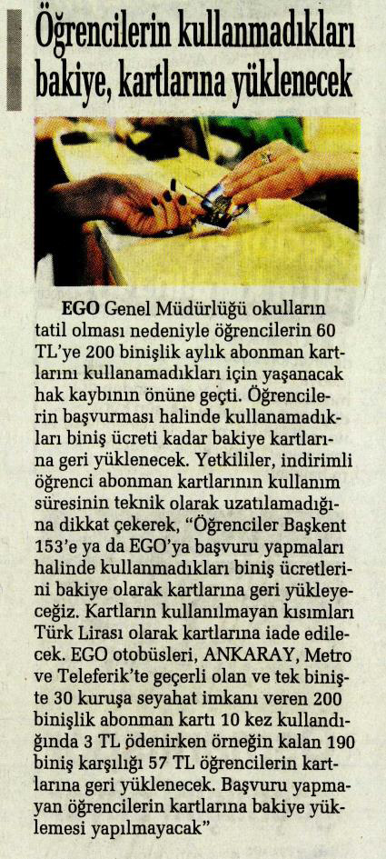 Sabah Ankara / 18.03.2020 Öğrencilerin kullanmadıkları bakiye, kartlarına yüklenecek