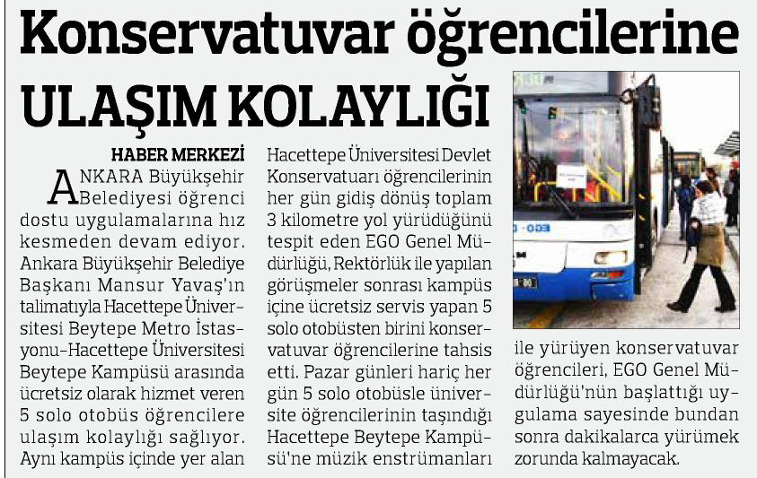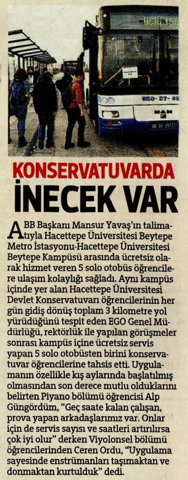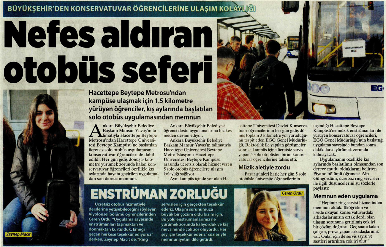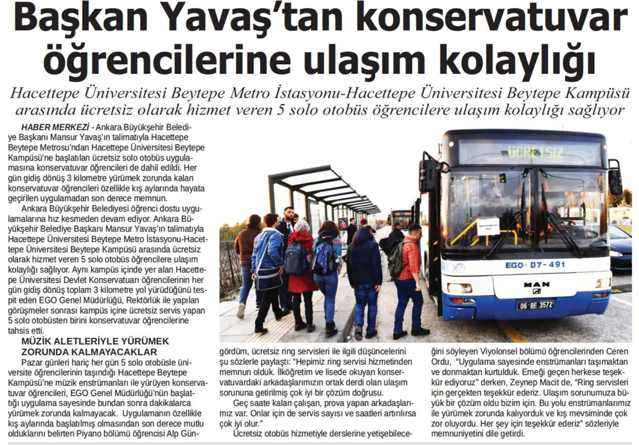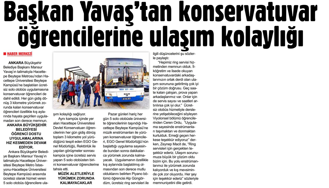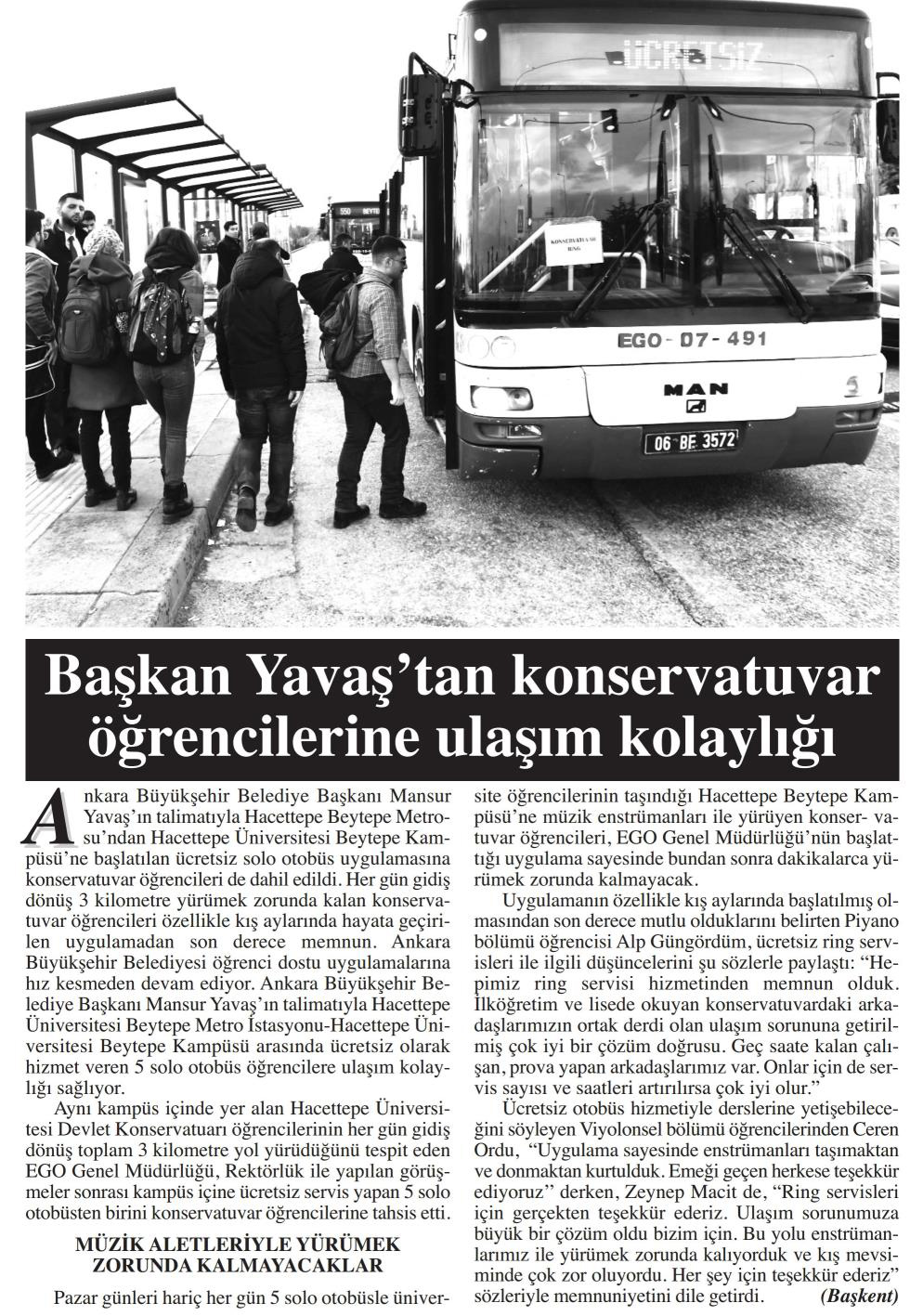 Başkent Gazetesi / 26.02.2020 Öğrencilere ulaşım kolaylığı