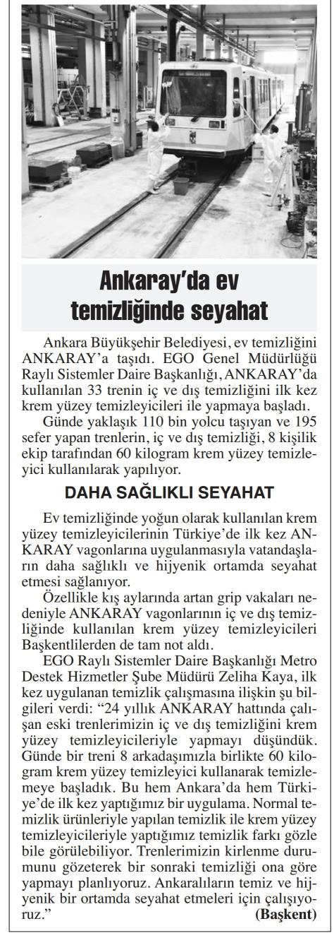 Başkent Gazetesi / 06.02.2020 Ankaray'da ev temizliğinde seyahat