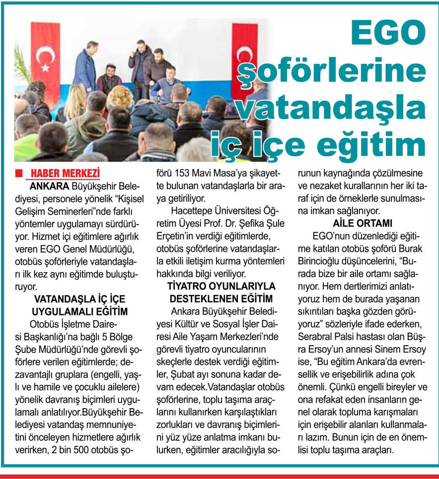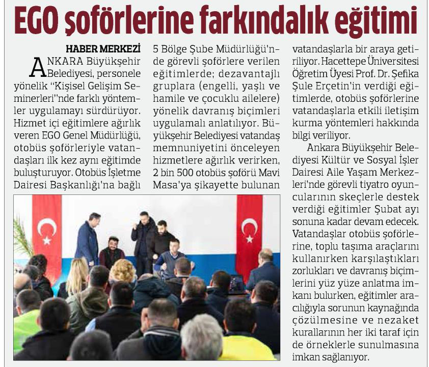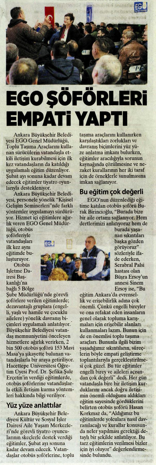 Milliyet Ankara / 10.02.2020 EGO şoförleri empati yaptı
