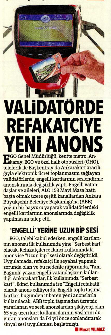 Hürriyet Ankara / 10.02.2020 Validatörde refakatçiye yeni anons