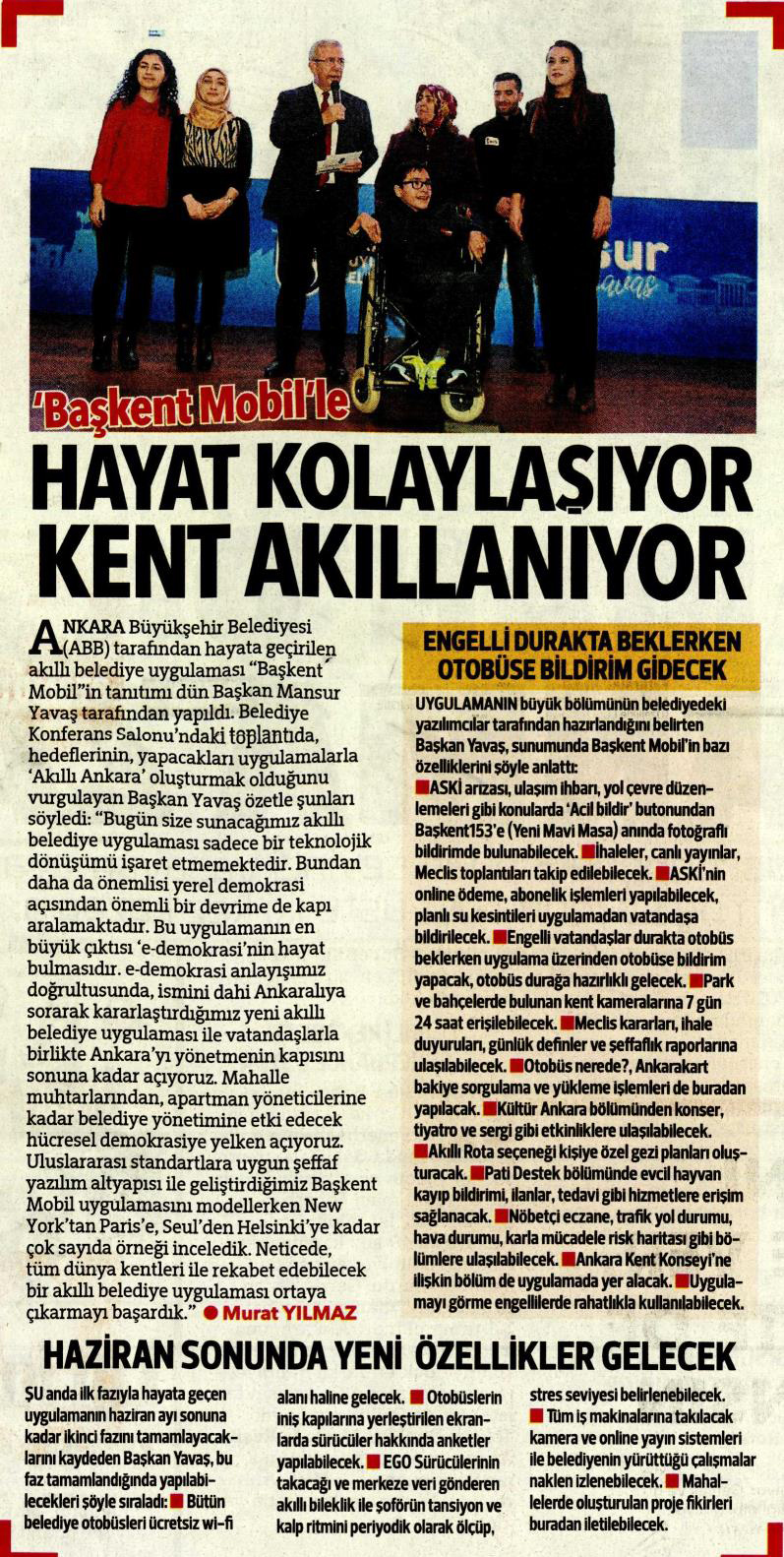 Hürriyet Ankara / 15.02.2020 Başkent Mobil'le hayat kolaylaşıyor, kent akıllanıyor