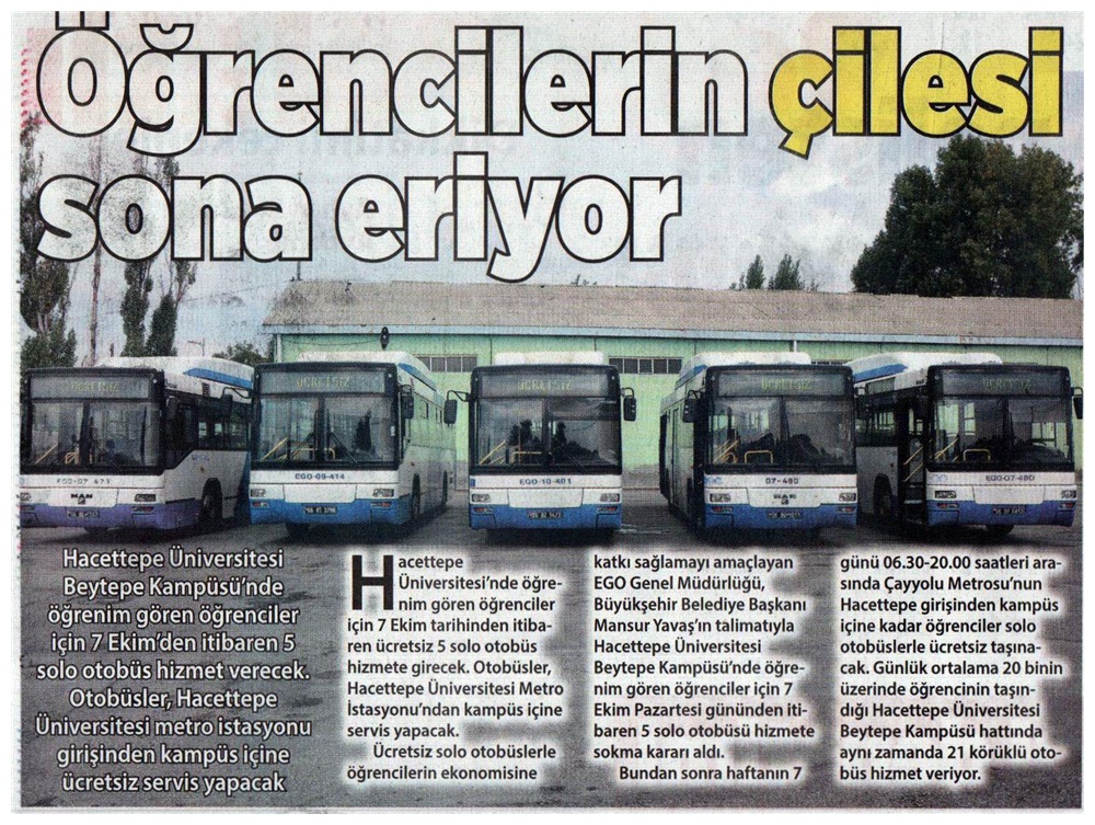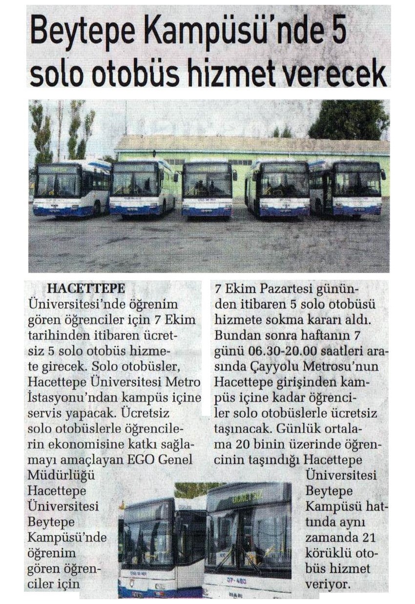 Ankara Sabah / 28.09.2019 Beytepe kampüsünde 5 solo otobüs hizmet verecek