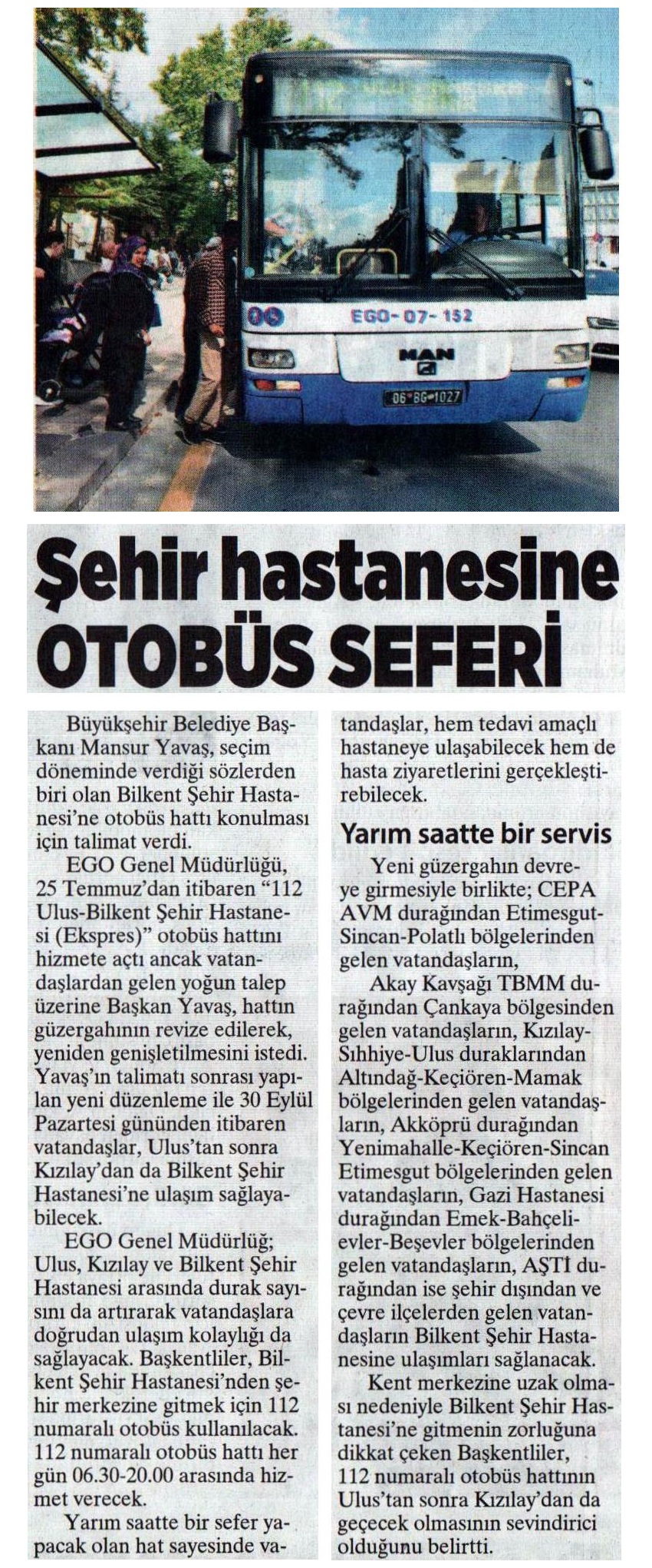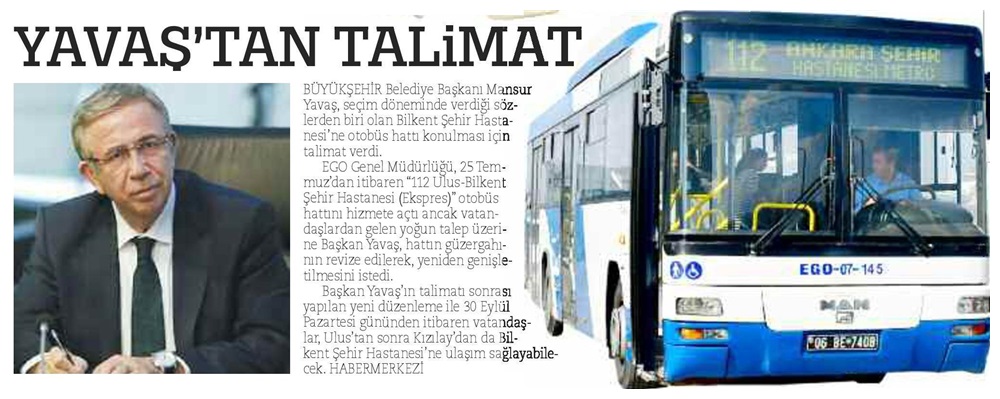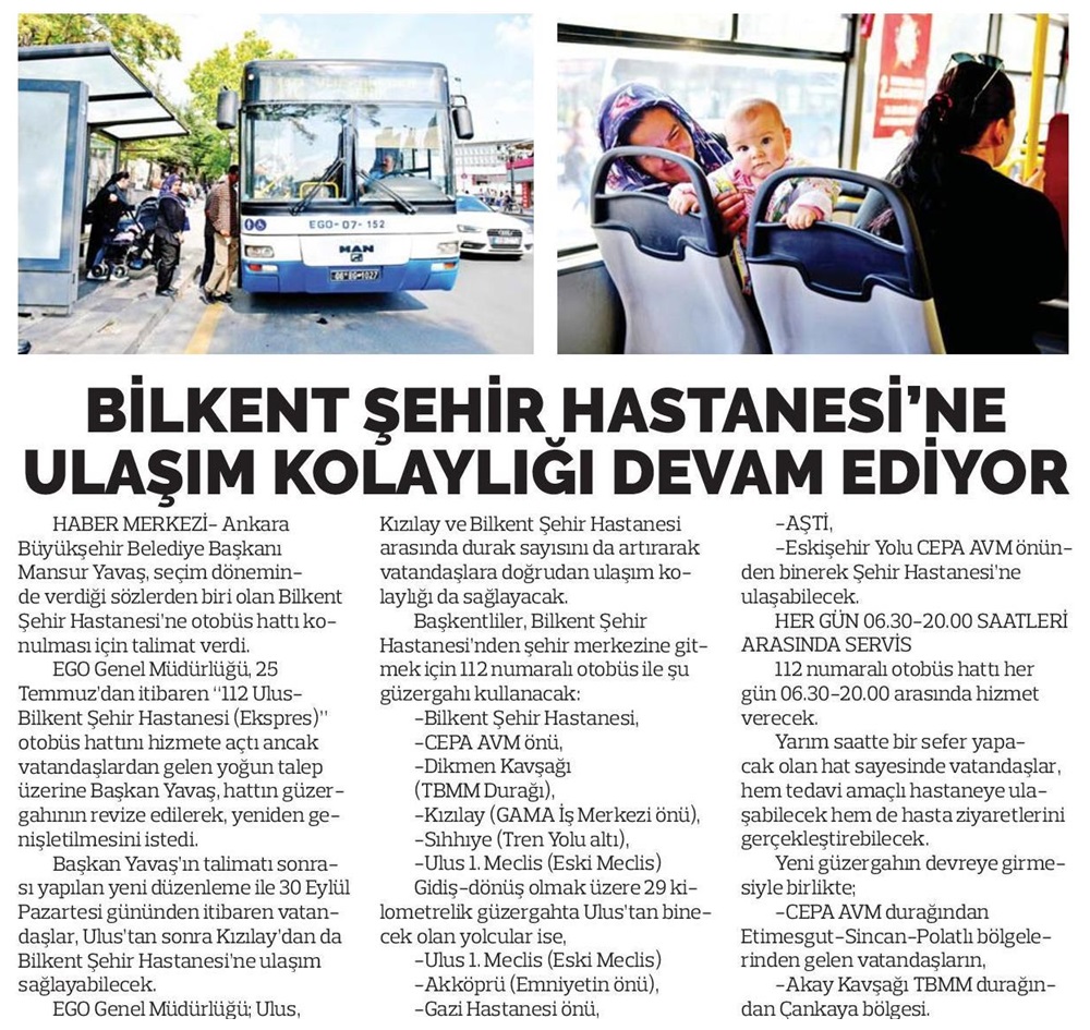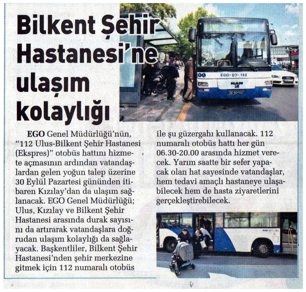 Ankara Milliyet / 29.09.2019 Şehir Hastanesine otobüs seferi