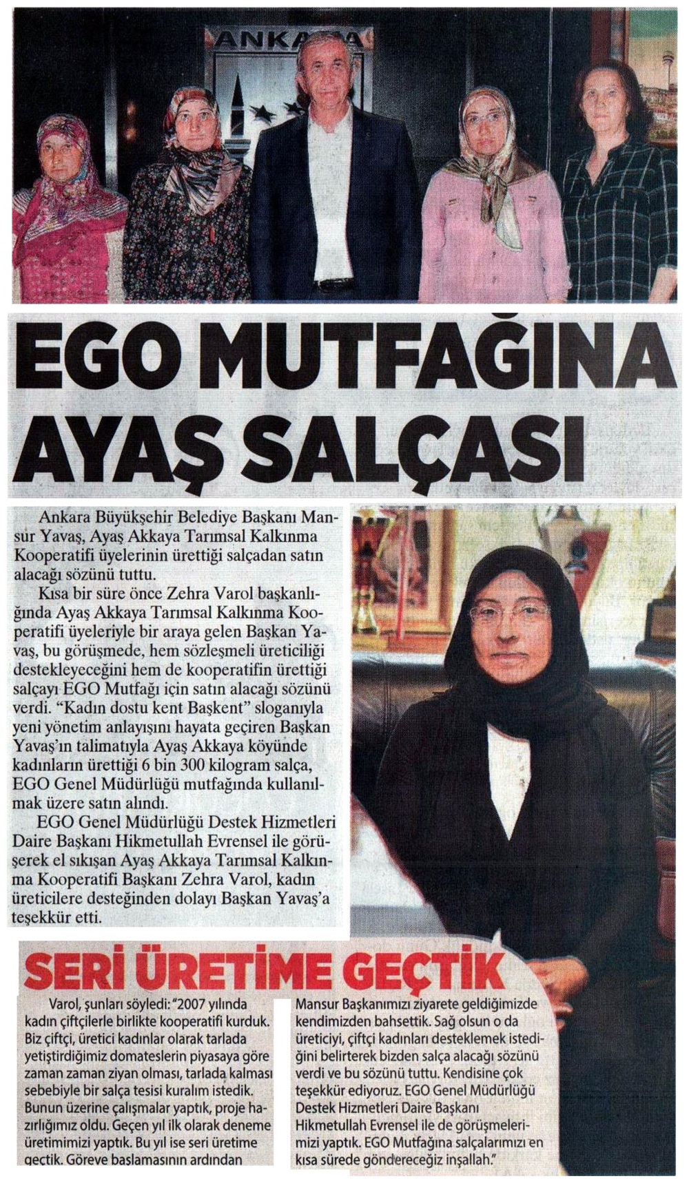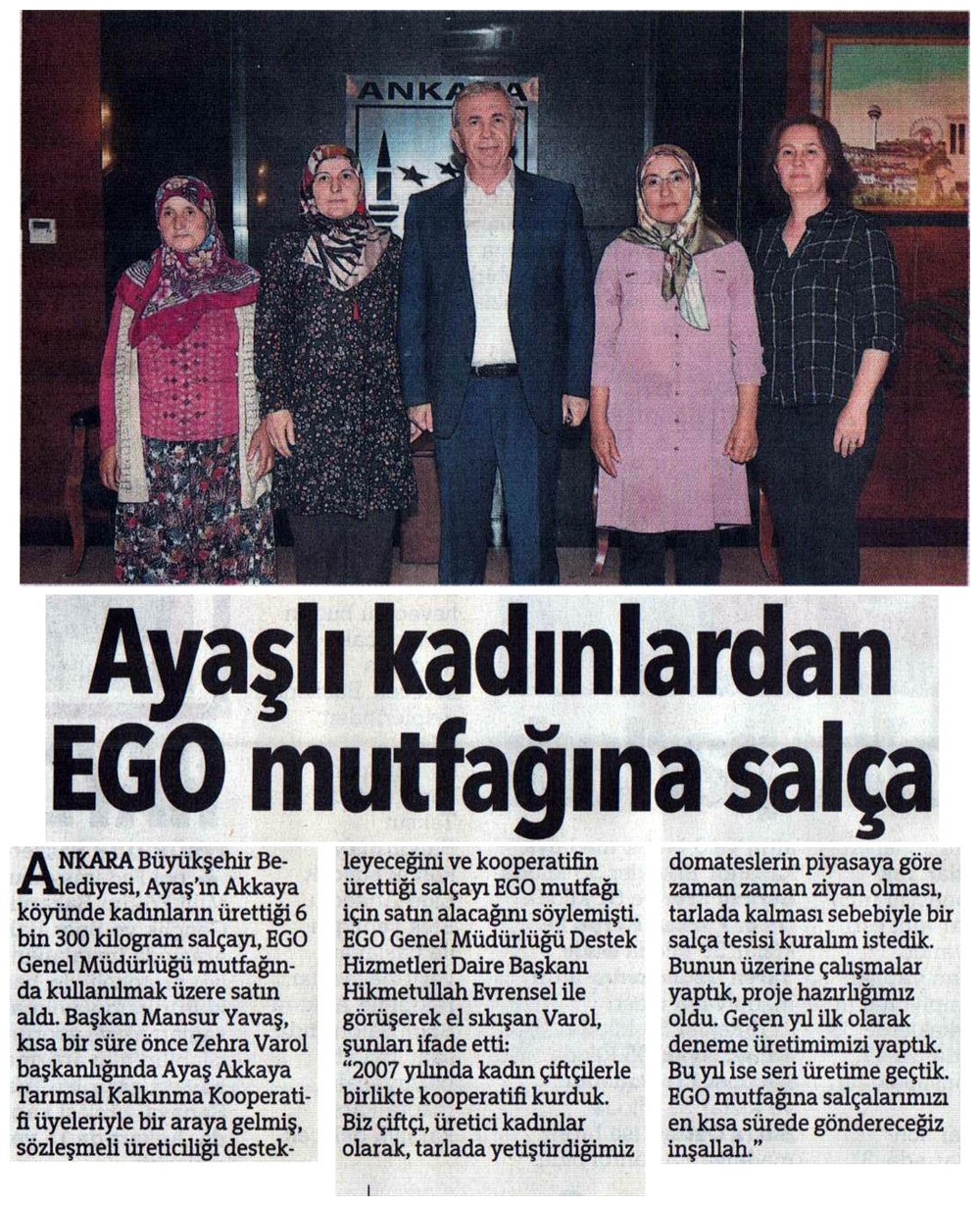 Ankara Milliyet / 06.10.2019 EGO mutfağına Ayaş salçası