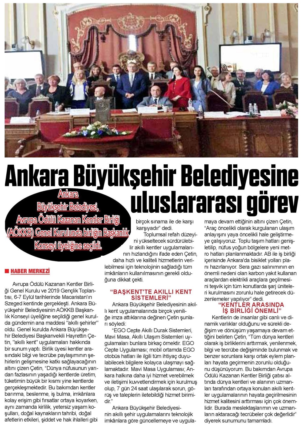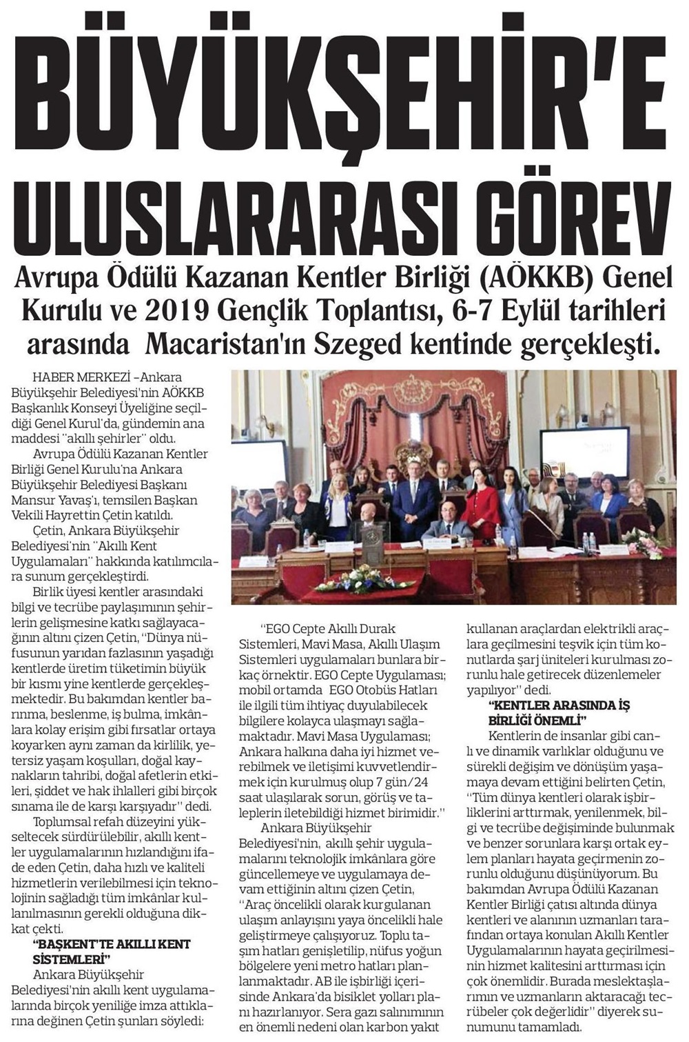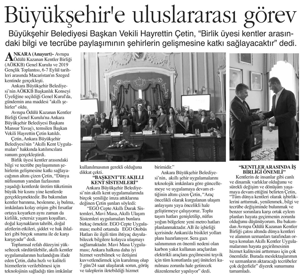 Sonsöz Gazetesi / 12.09.2019 Büyükşehir'e uluslararası görev