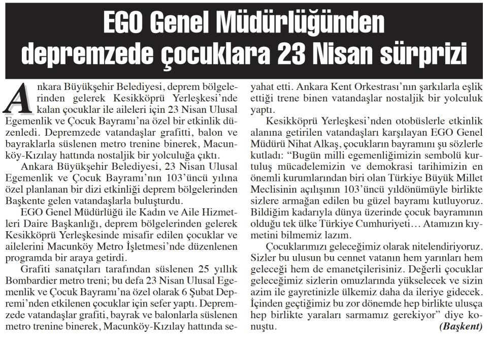 BAŞKENT GAZETESİ - 24.04.2023