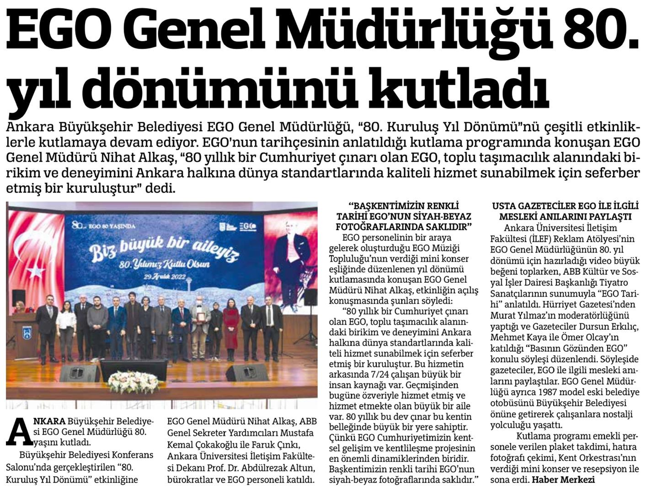 24 Saat / 31.12.2022 EGO Genel Müdürlüğü 80. yıl dönümünü kutladı