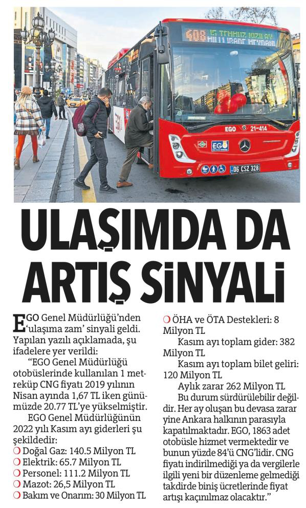 Hürriyet Ankara / 04.01.2023 Ulaşımda da artış sinyali