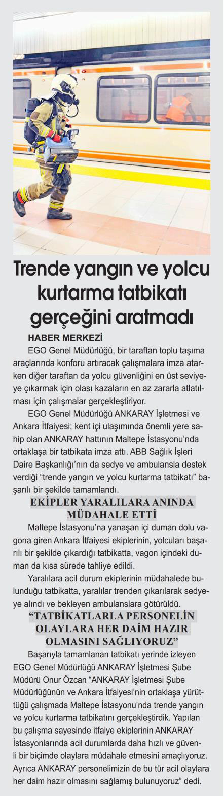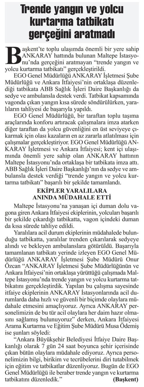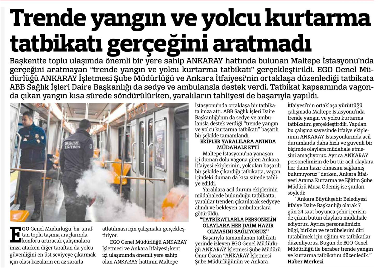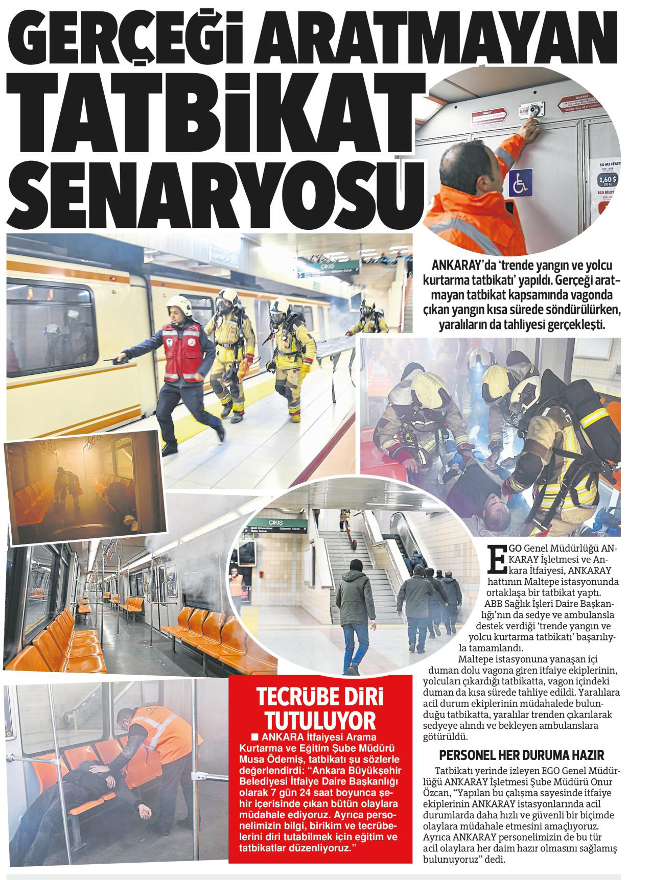 Başkent Gazetesi / 29.11.2022 Trende yangın ve yolcu kurtarma tatbikatı gerçeğini aratmadı
