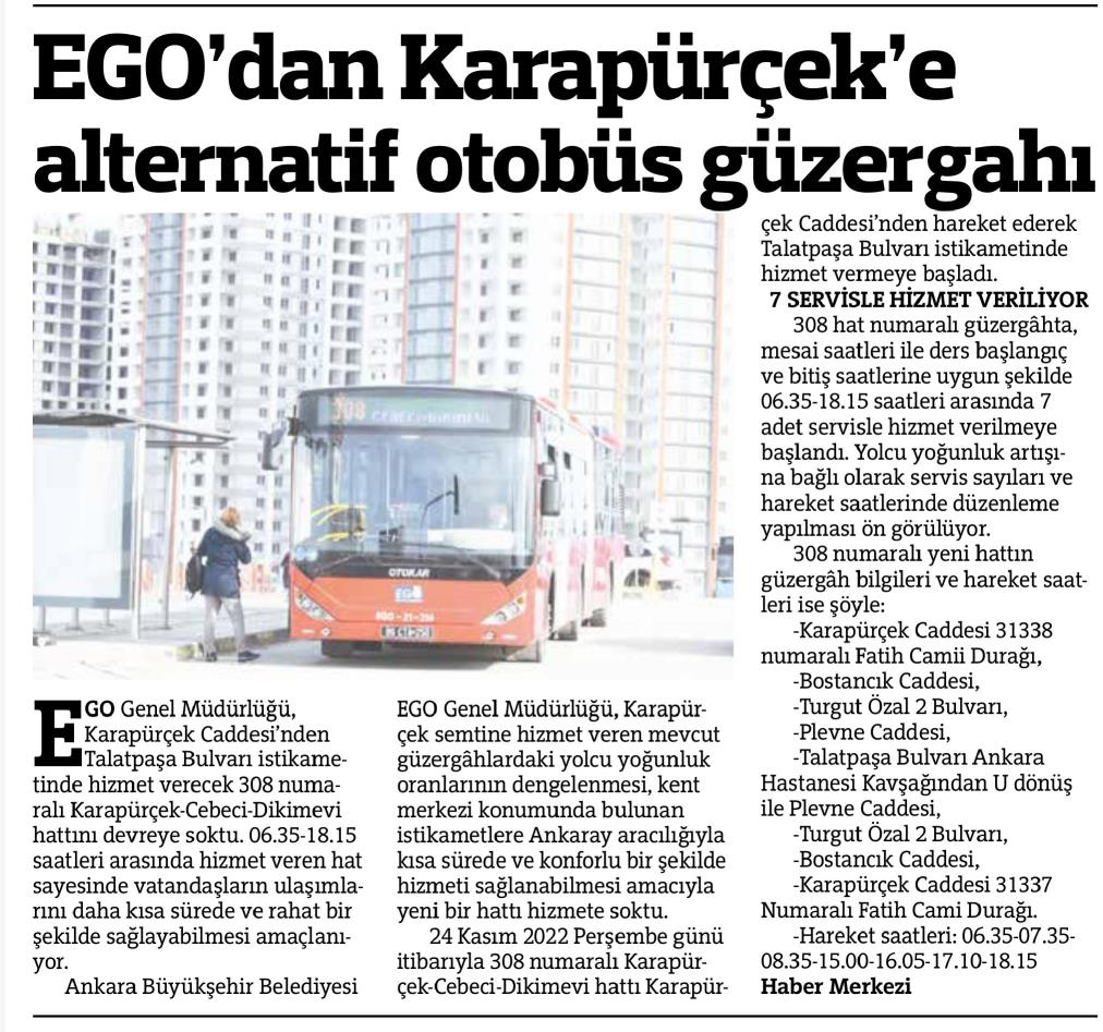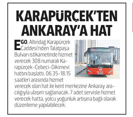 Zafer / 30.11.2022 EGO'dan Karapürçek'e alternatif otobüs güzergahı