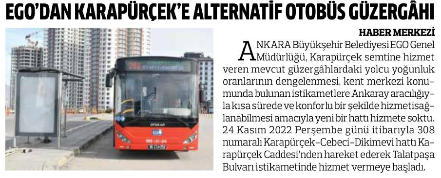 Hürriyet Ankara / 29.11.2022 Karapürçek'ten ANKARAY'a hat