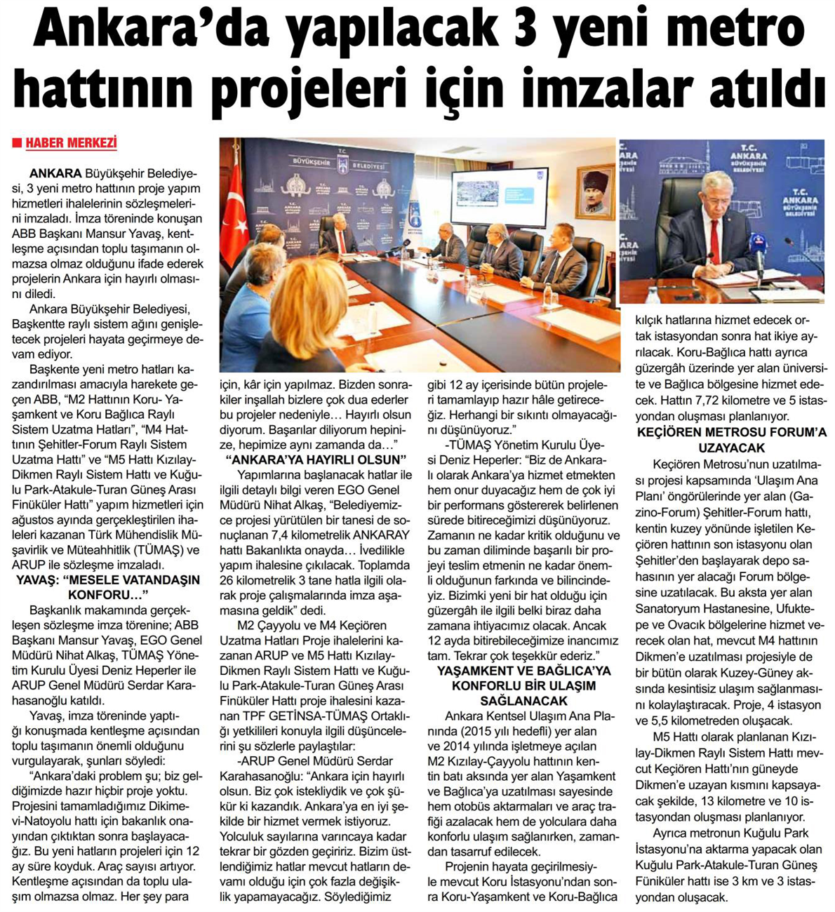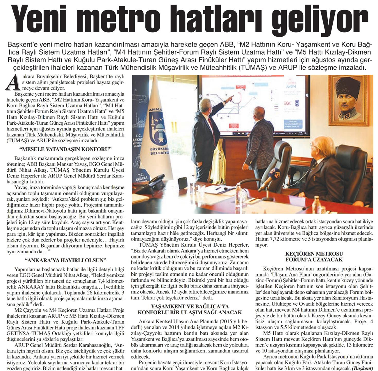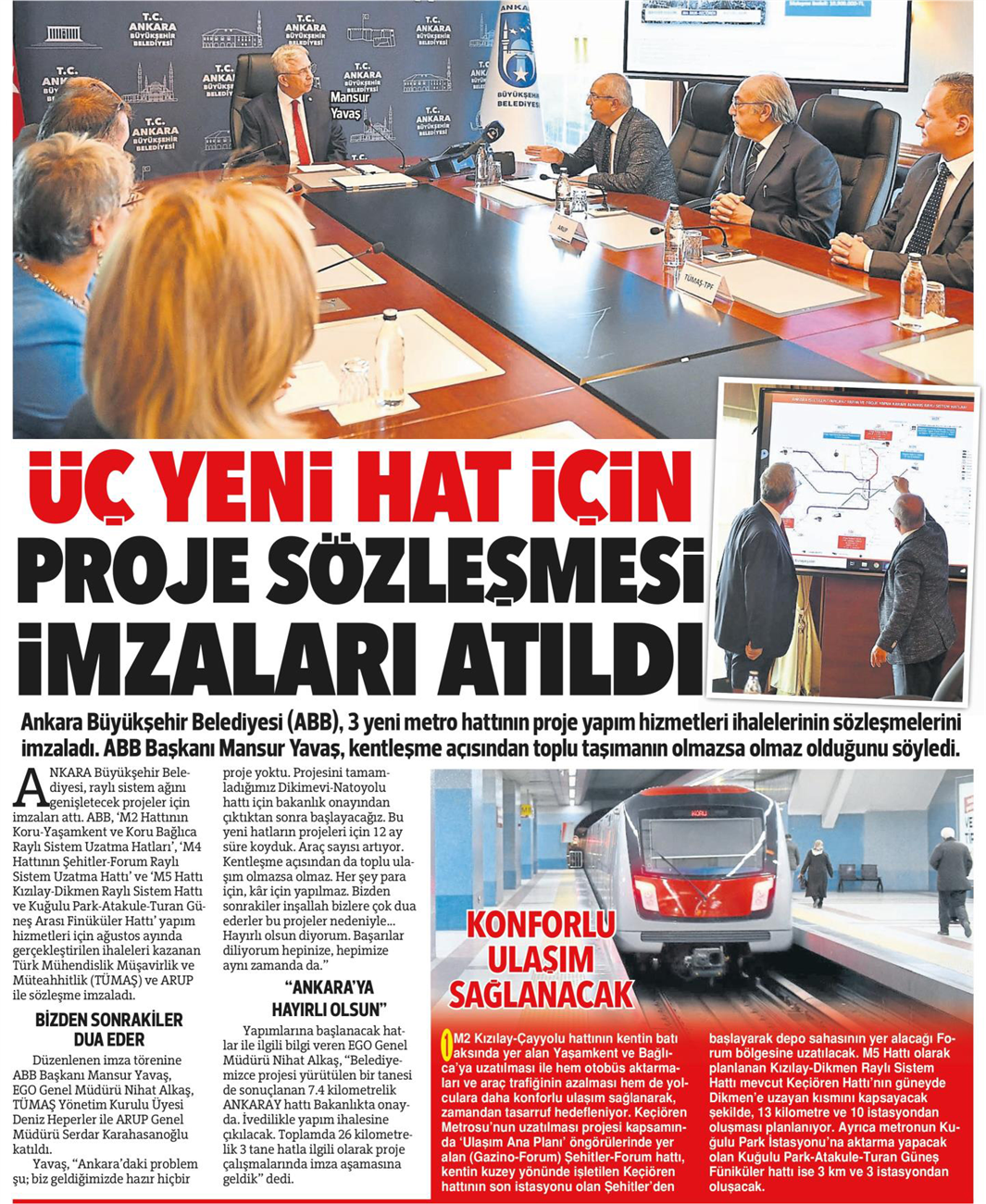 Başkent Gazetesi / 08.10.2022 Yeni Metro hatları geliyor