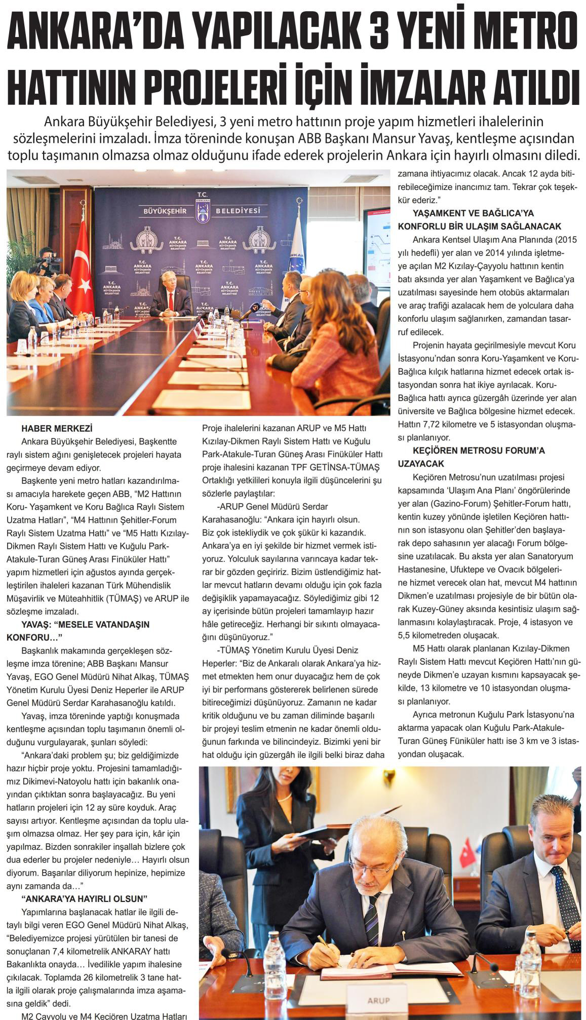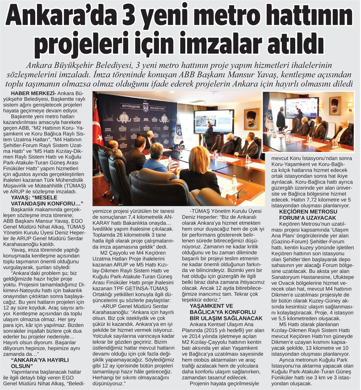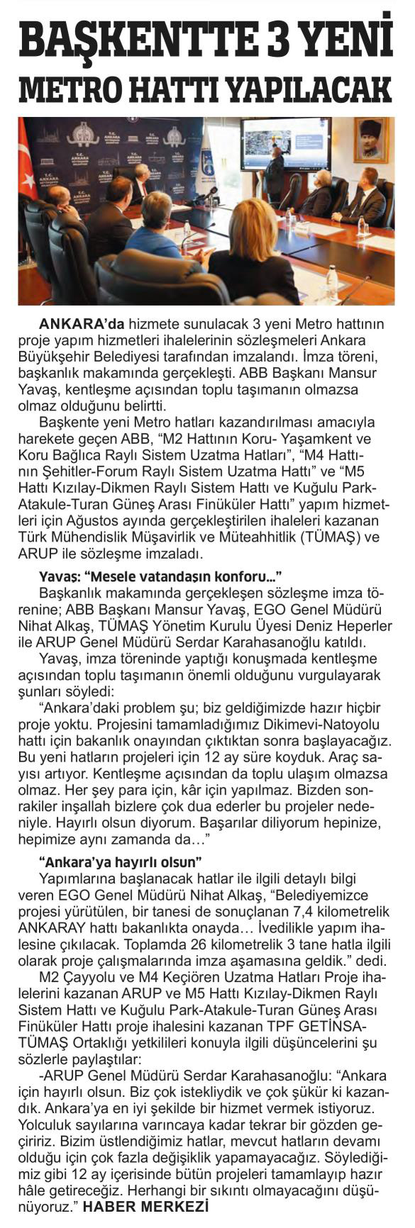 Başkent Gazetesi / 08.10.2022 Yeni Metro hatları geliyor