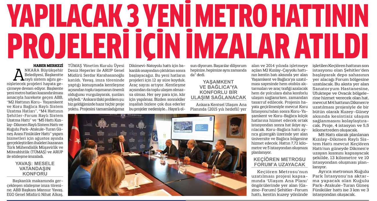 Milli Gazete / 08.10.2022 Ankara'ya 3 yeni Metro'da imzalar atıldı