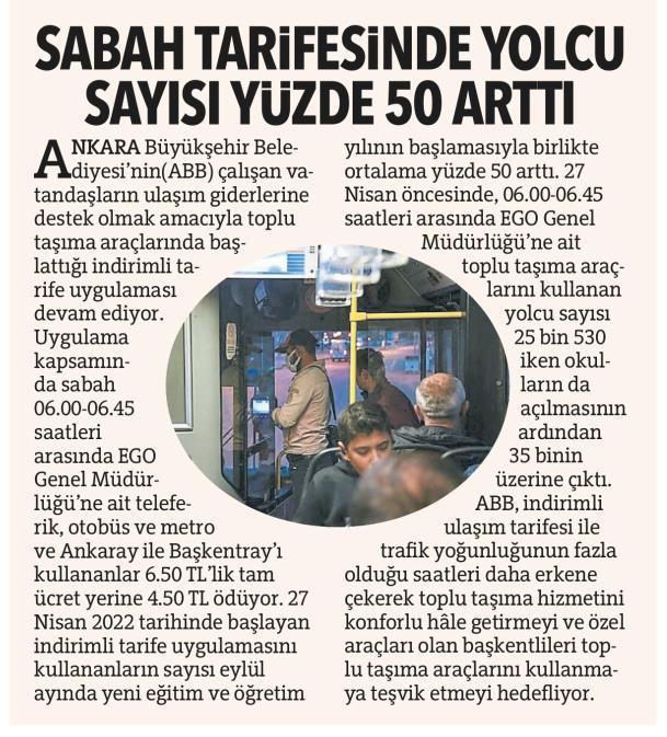 Hürriyet Ankara / 10.10.2022 Sabah tarifesinde yolcu sayısı yüzde 50 arttı