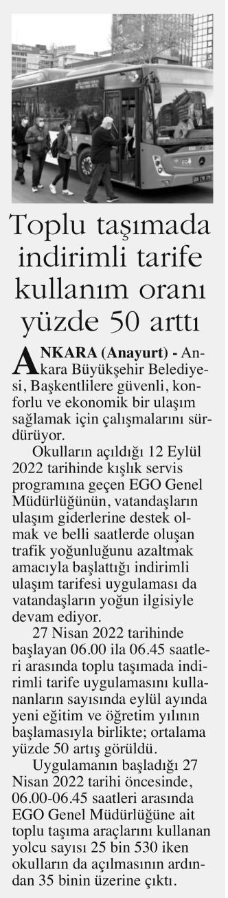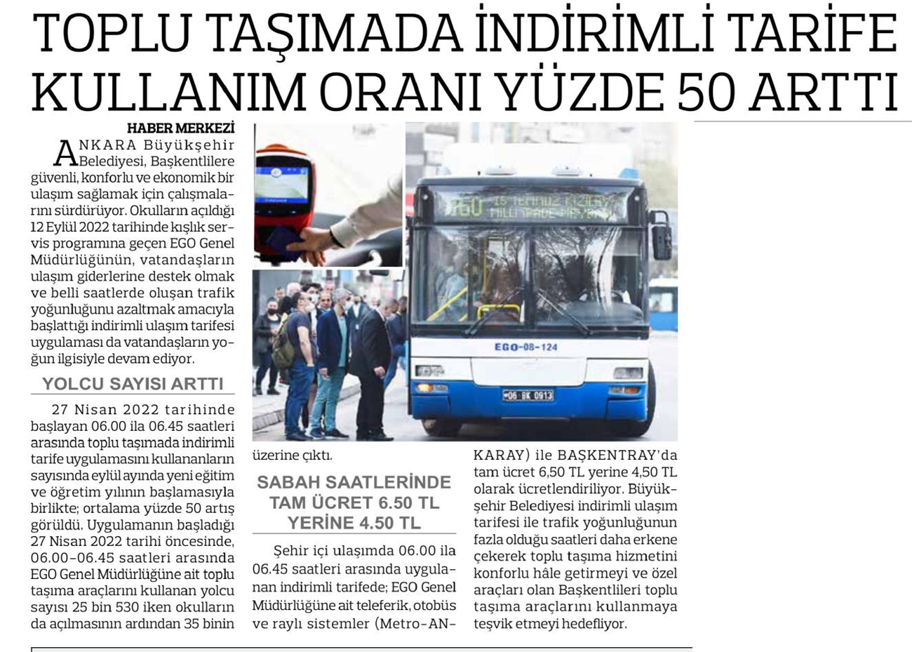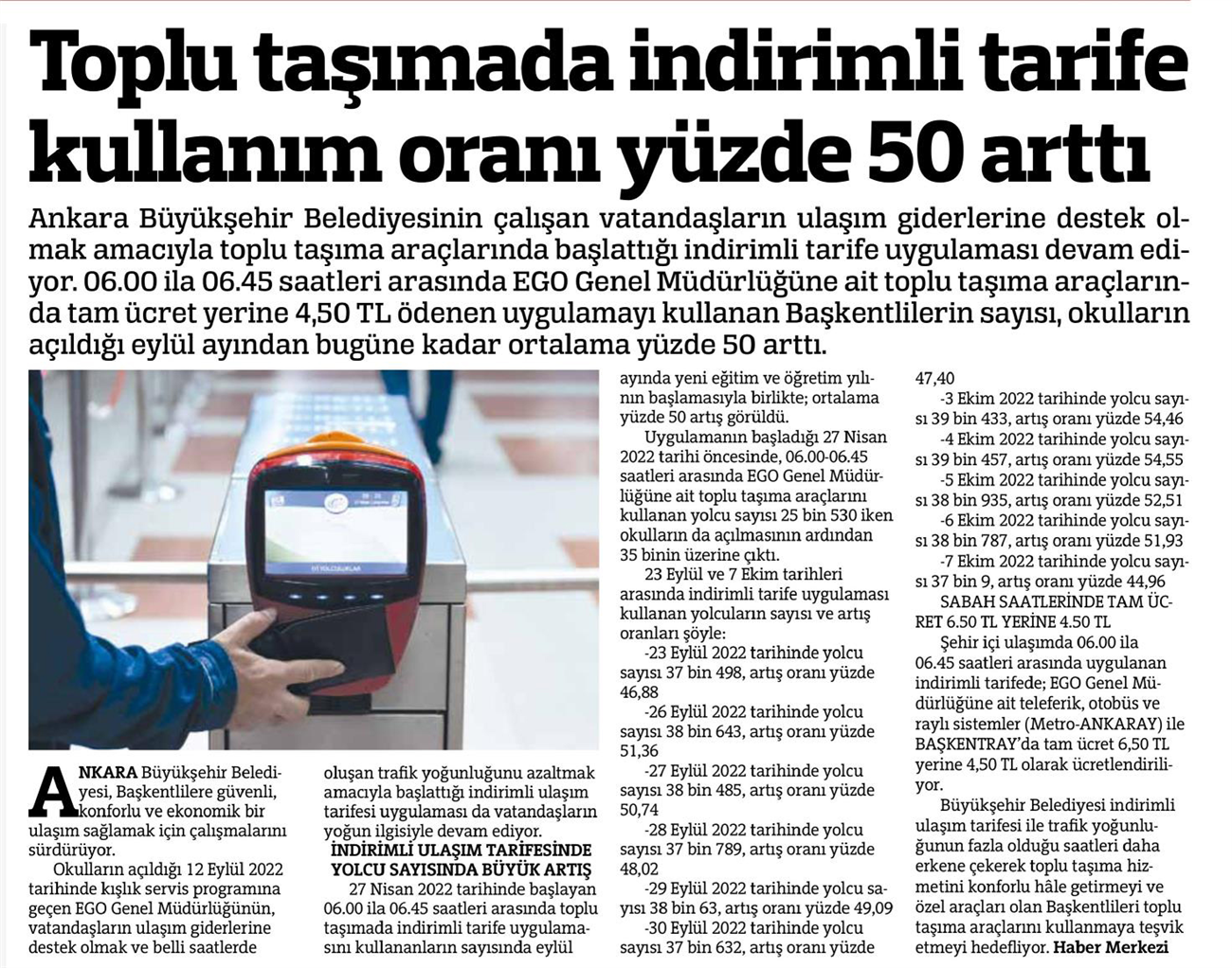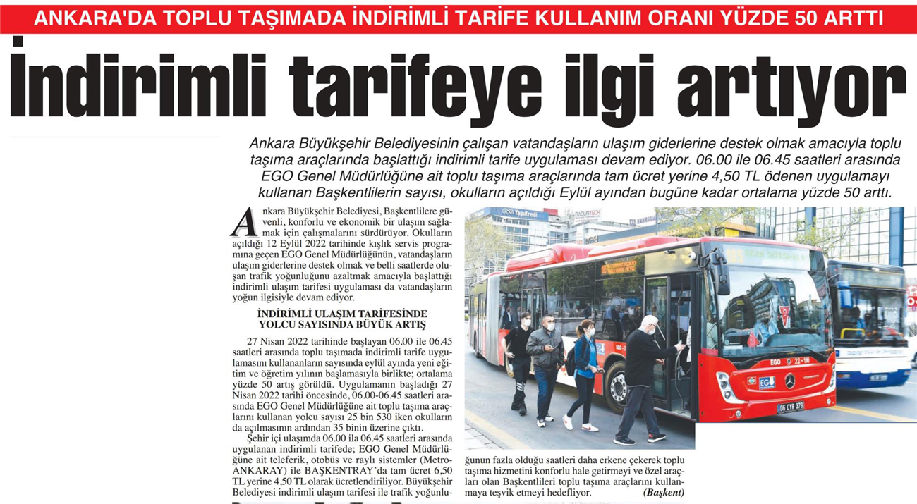 Başkent Gazetesi / 10.10.2022 İndirimli tarifeye ilgi artıyor