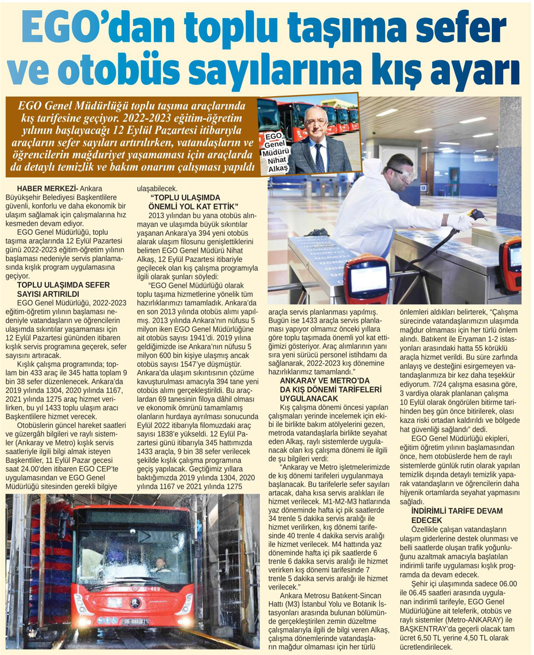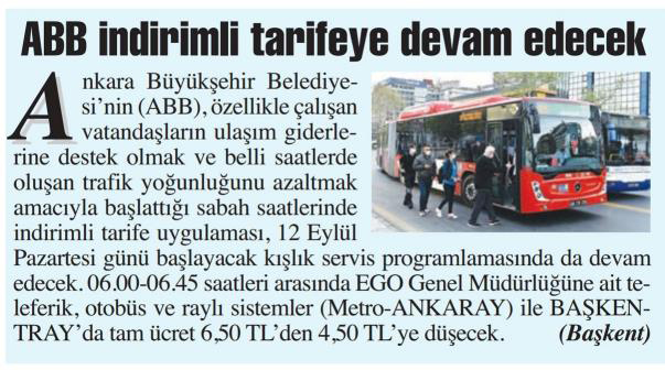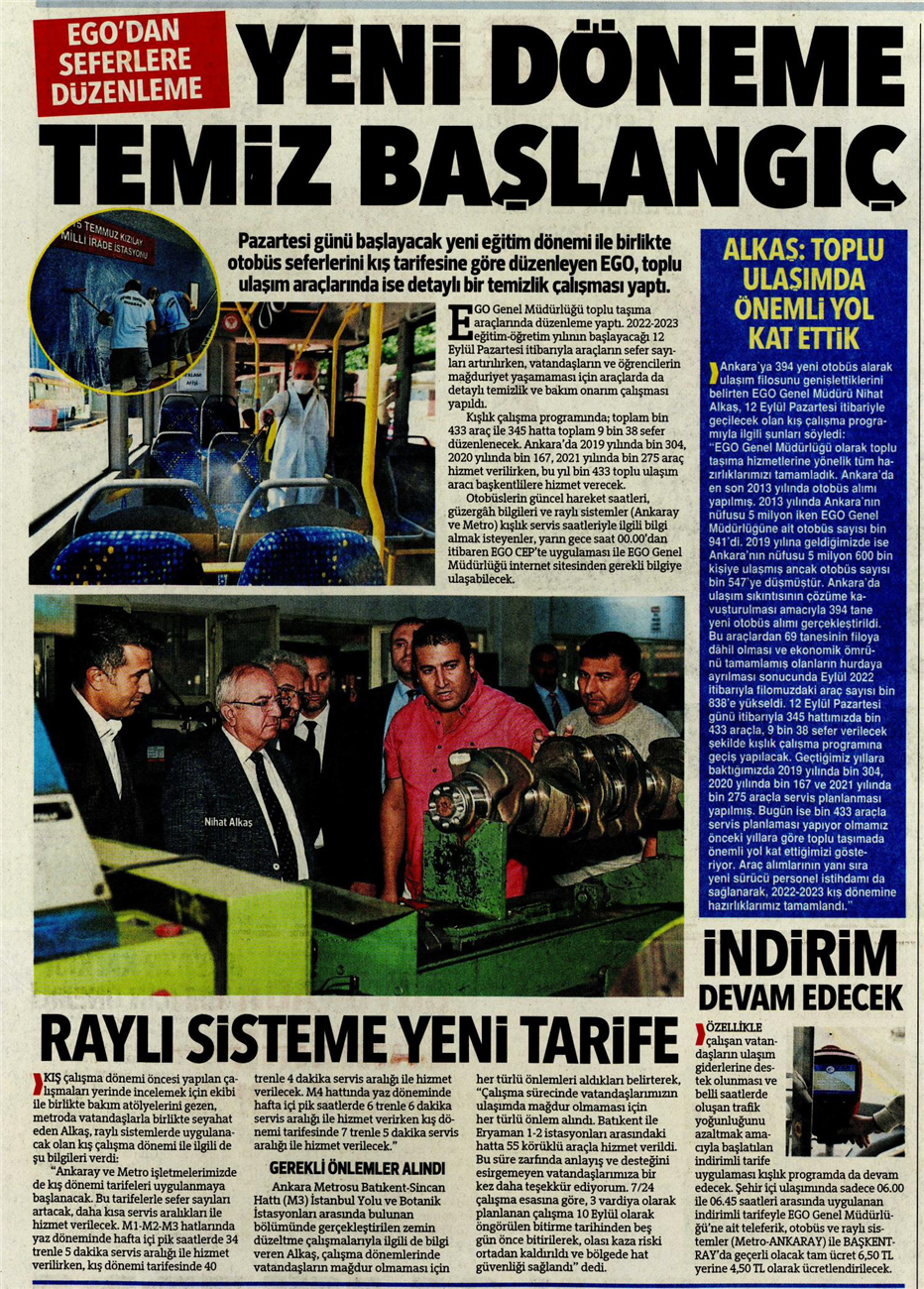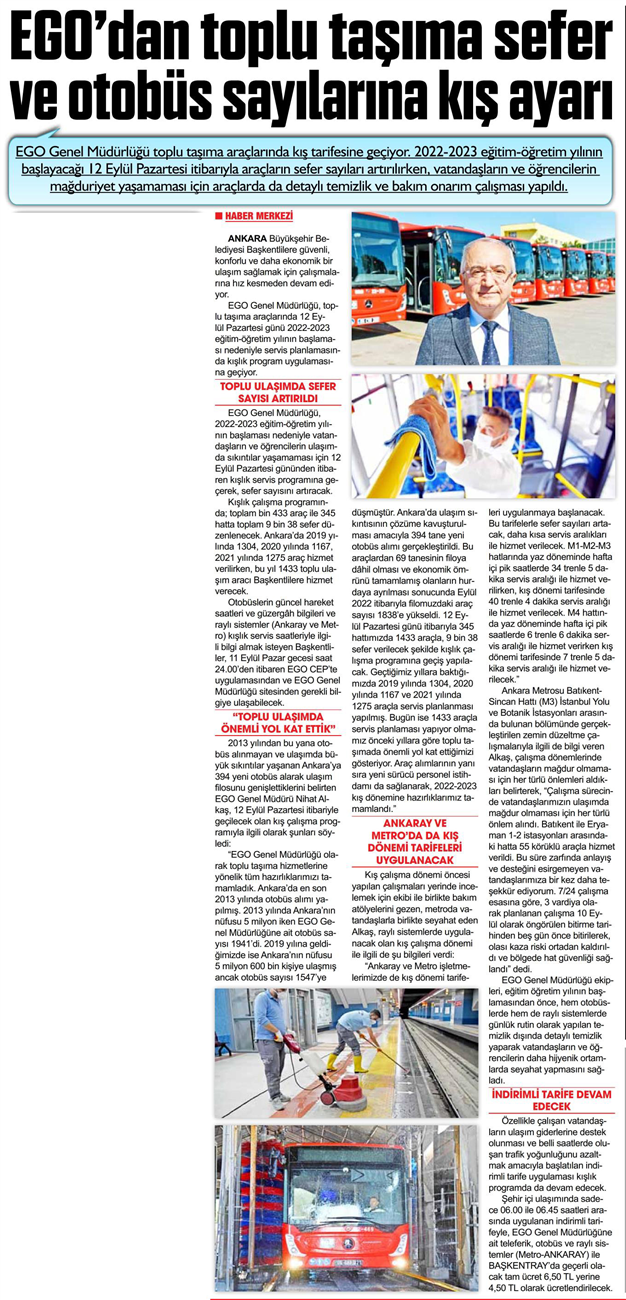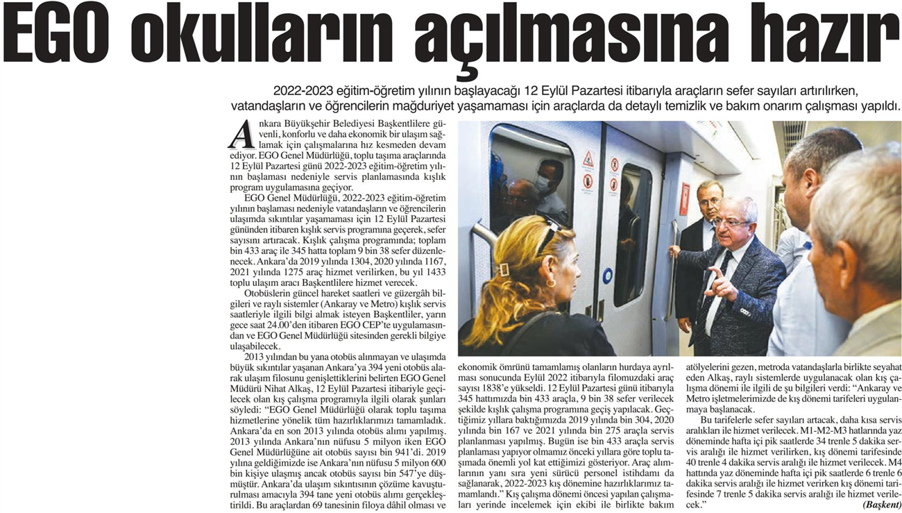Başkent Gazetesi / 10.09.2022 EGO okulların açılmasına hazır