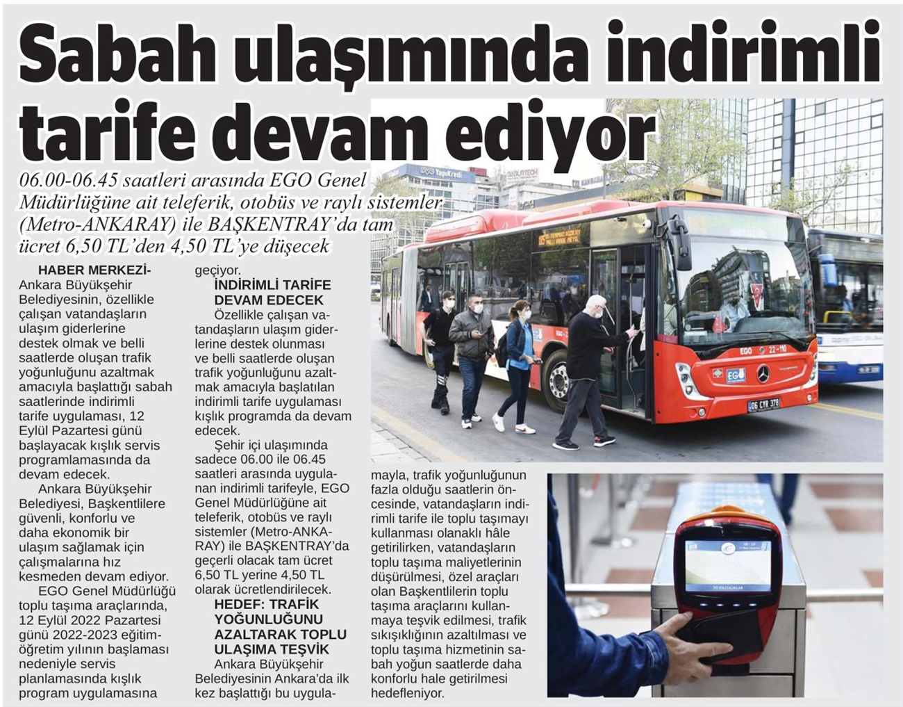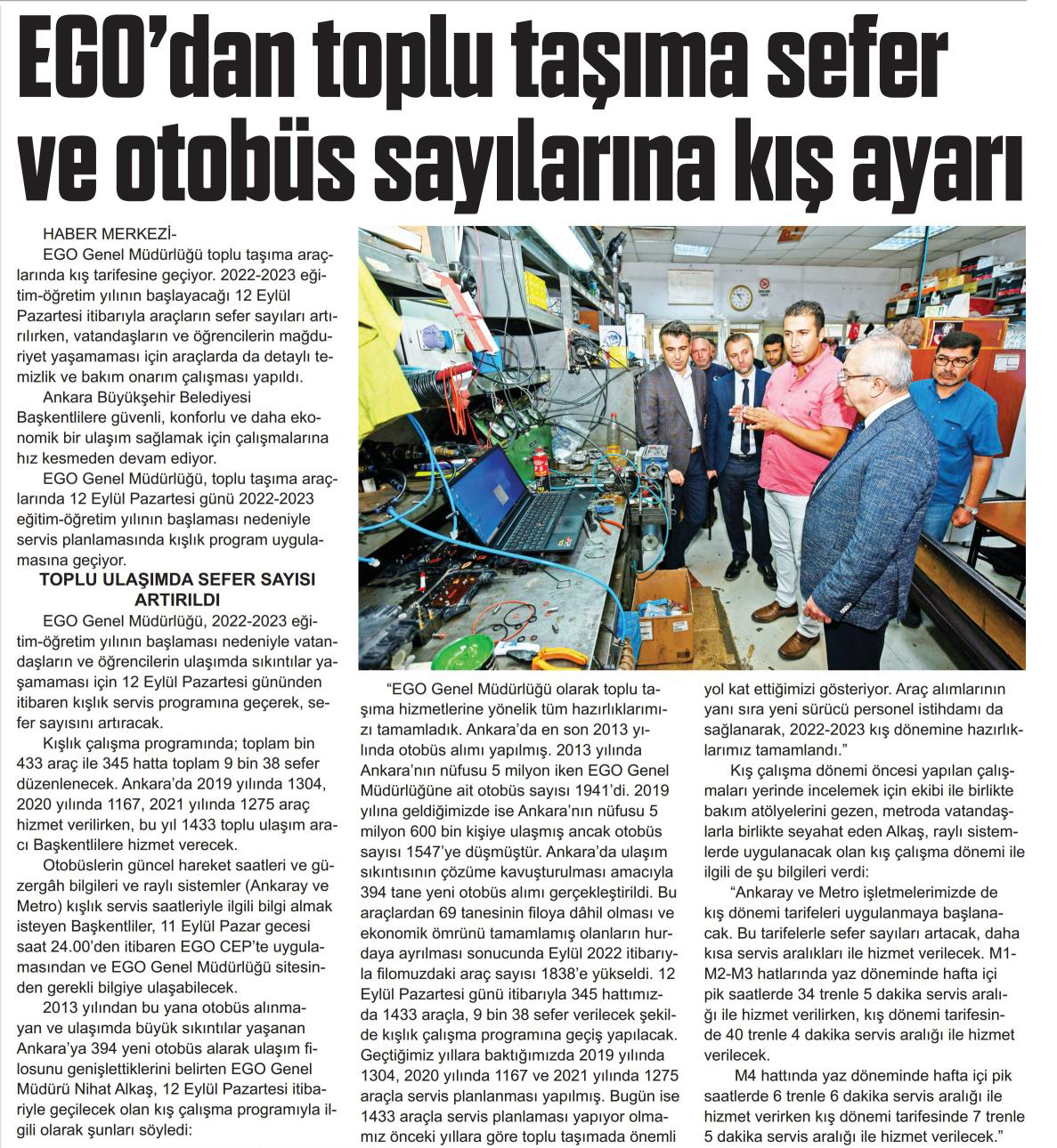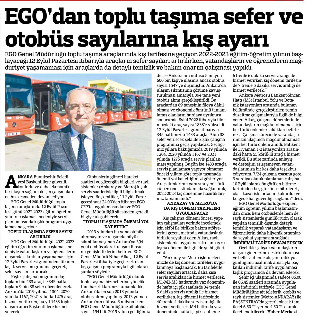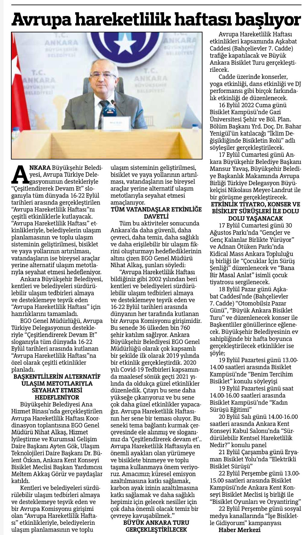 Başkent Gazetesi / 10.09.2022 EGO okulların açılmasına hazır