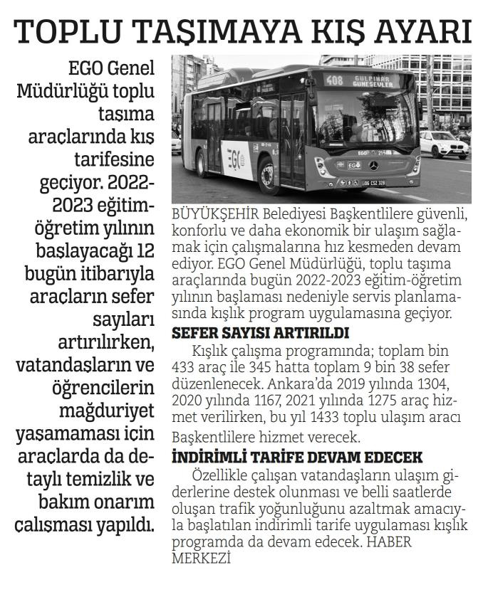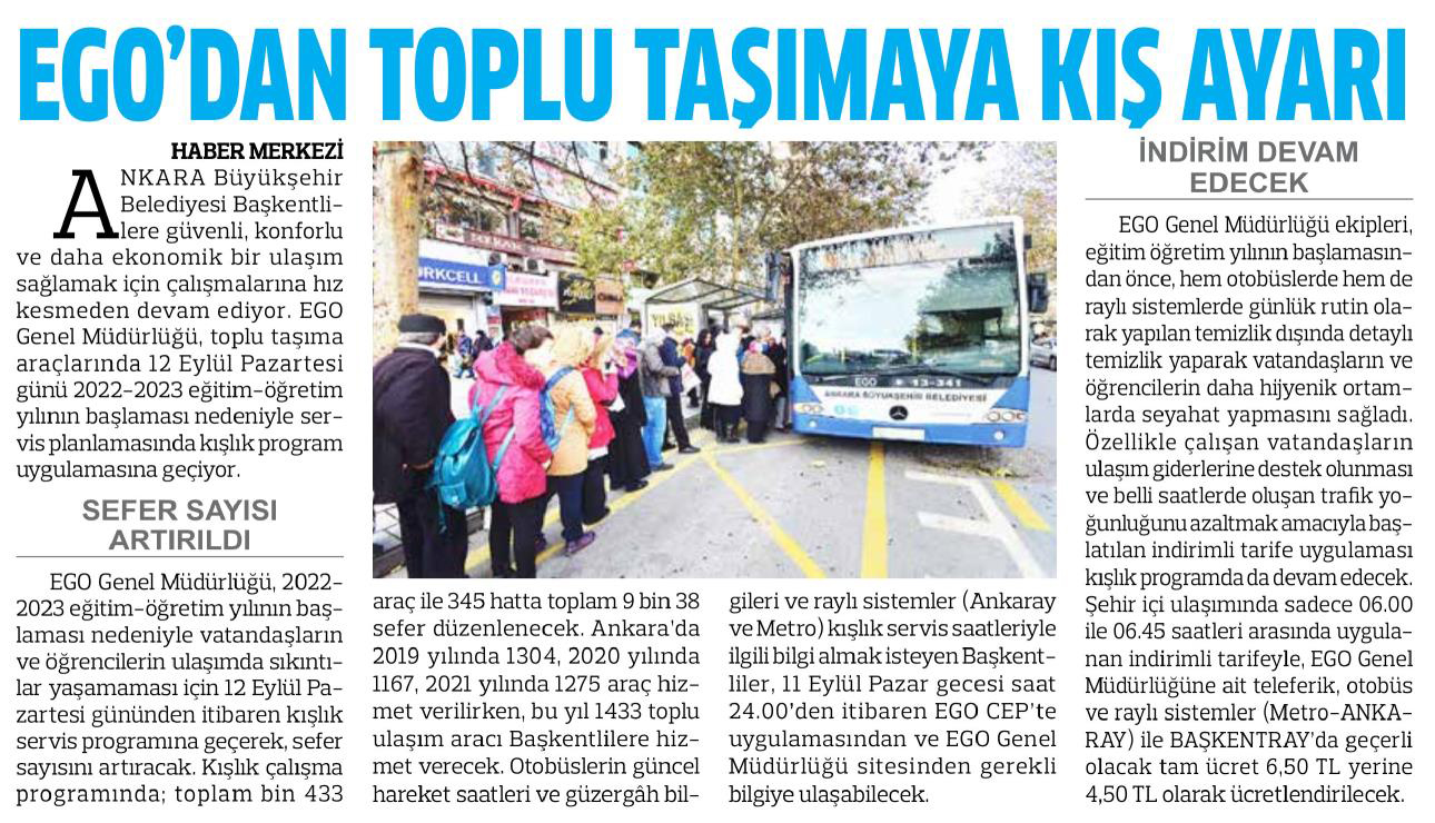 Güçlü Anadolu / 10.09.2022 EGO'dan toplu taşıma sefer ve otobüs sayılarına kış ayarı