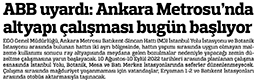 Hürriyet Ankara / 10.08.2022 Metro çalışması bugün başlıyor