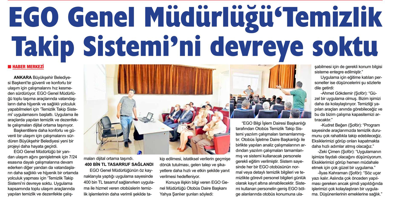 Zafer / 10.08.2022 EGO Genel Müdürlüğü temizlik takip sistemini devreye soktu