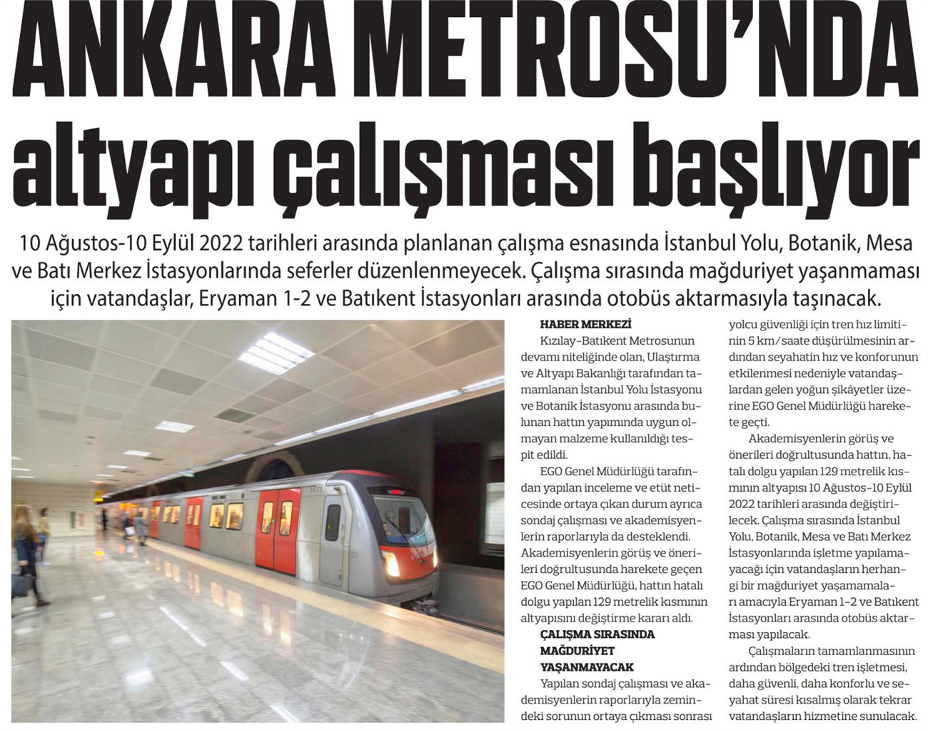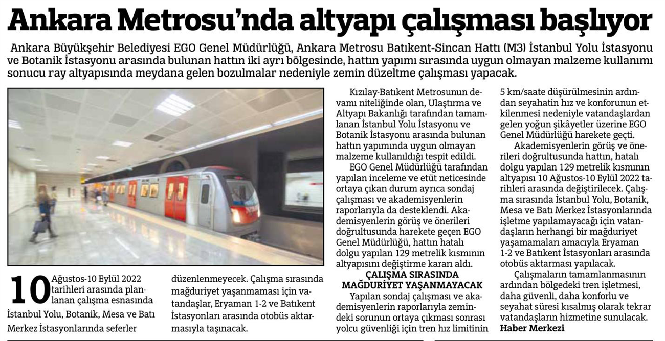 Hürriyet Ankara / 06.08.2022 Metro hattında zorunlu yenileme