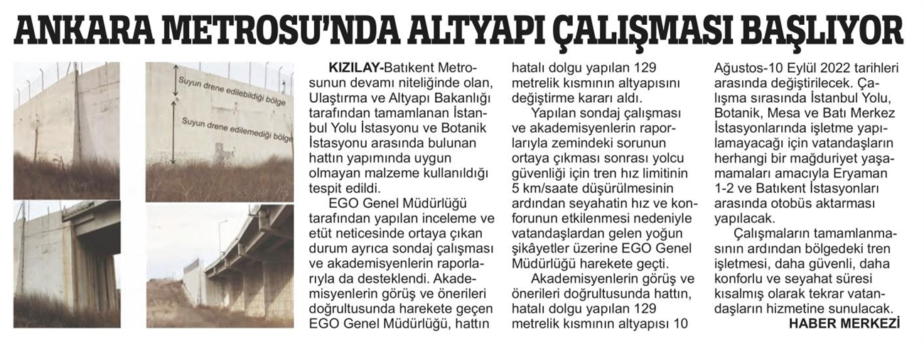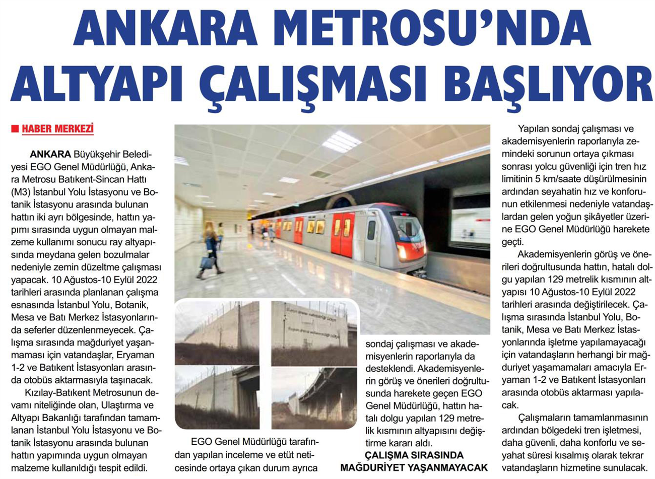 Güçlü Anadolu / 06.08.2022 Ankara Metrosu'nda altyapı çalışması başlıyor