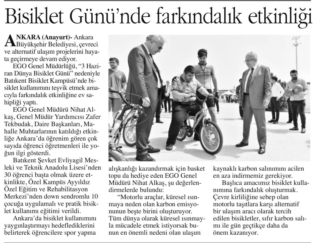 Başkent Gazetesi / 06.06.2022 Başkent'te pedallar fora