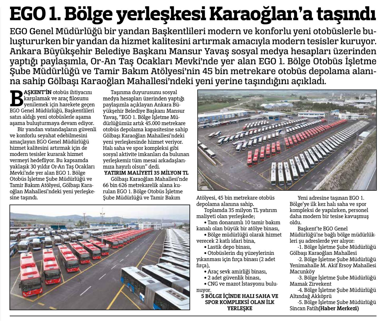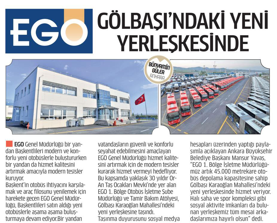 Milli Gazete / 02.06.2022 EGO Gölbaşı'ndaki yeni yerleşkesinde