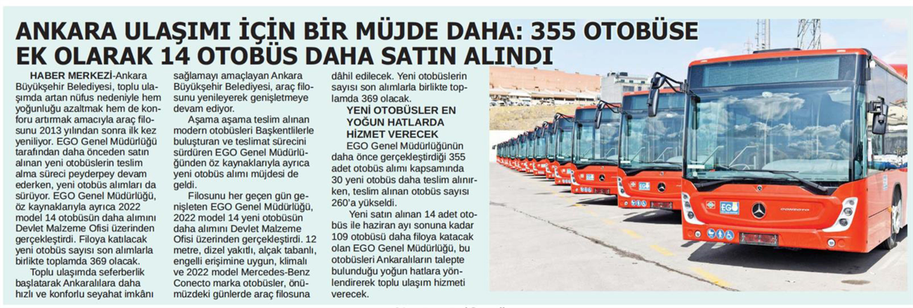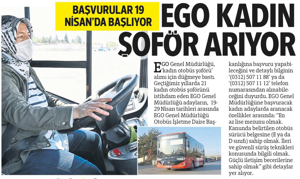 Hürriyet Ankara / 20.04.2022 EGO Kadın şoför arıyor