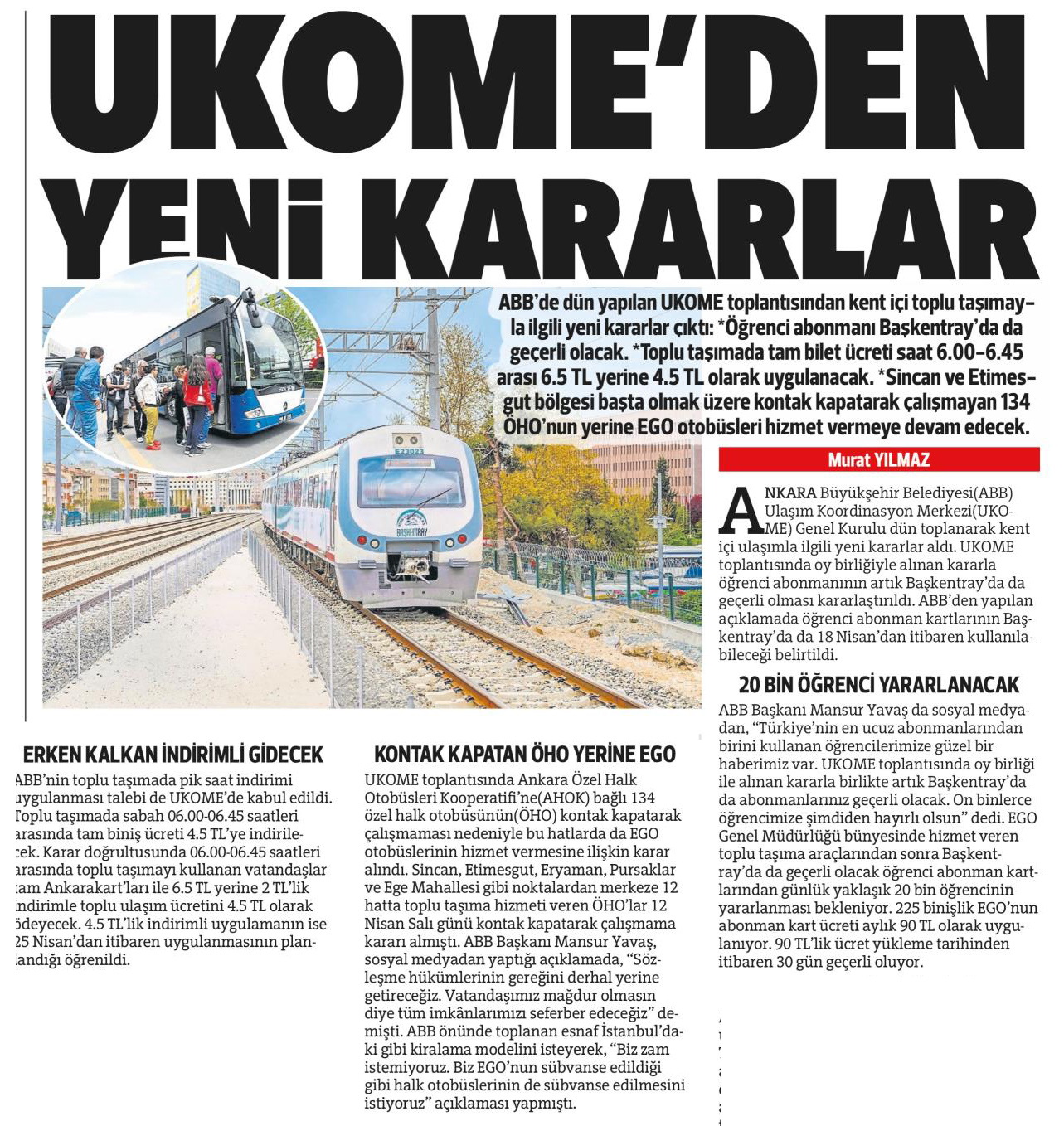 Hürriyet Ankara / 15.04.2022 UKOME'den yeni kararlar