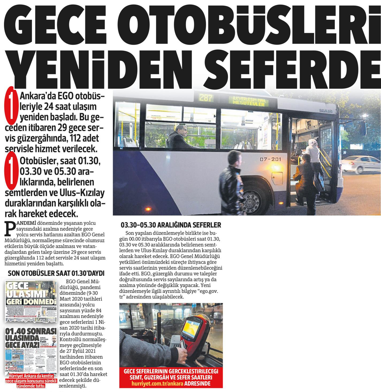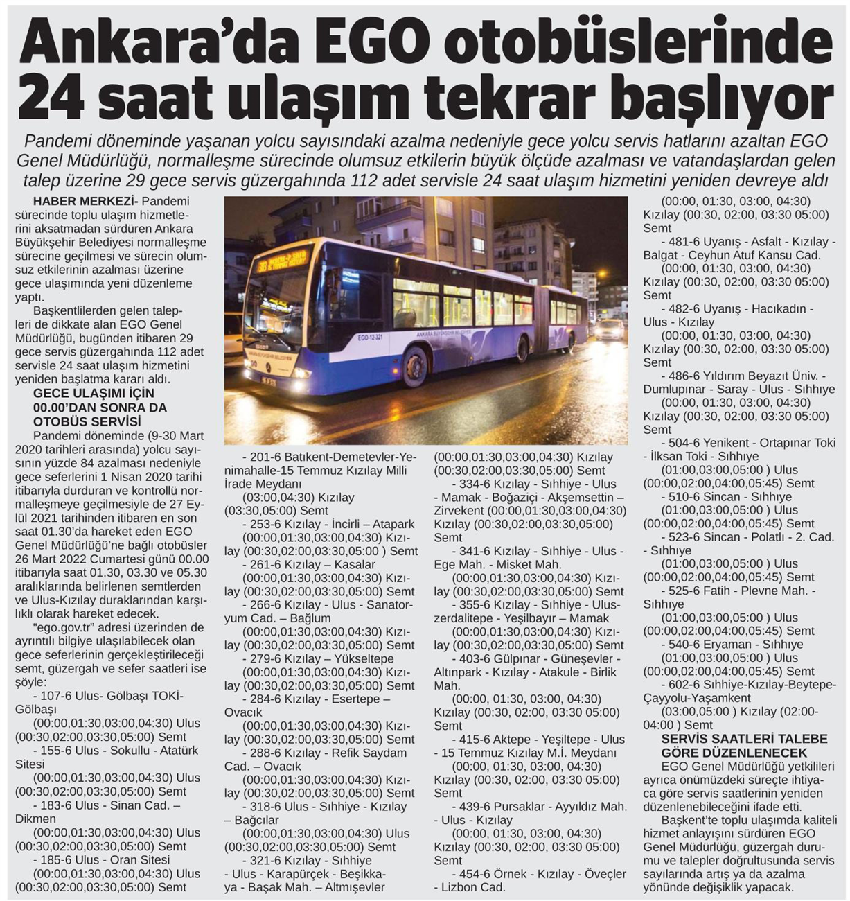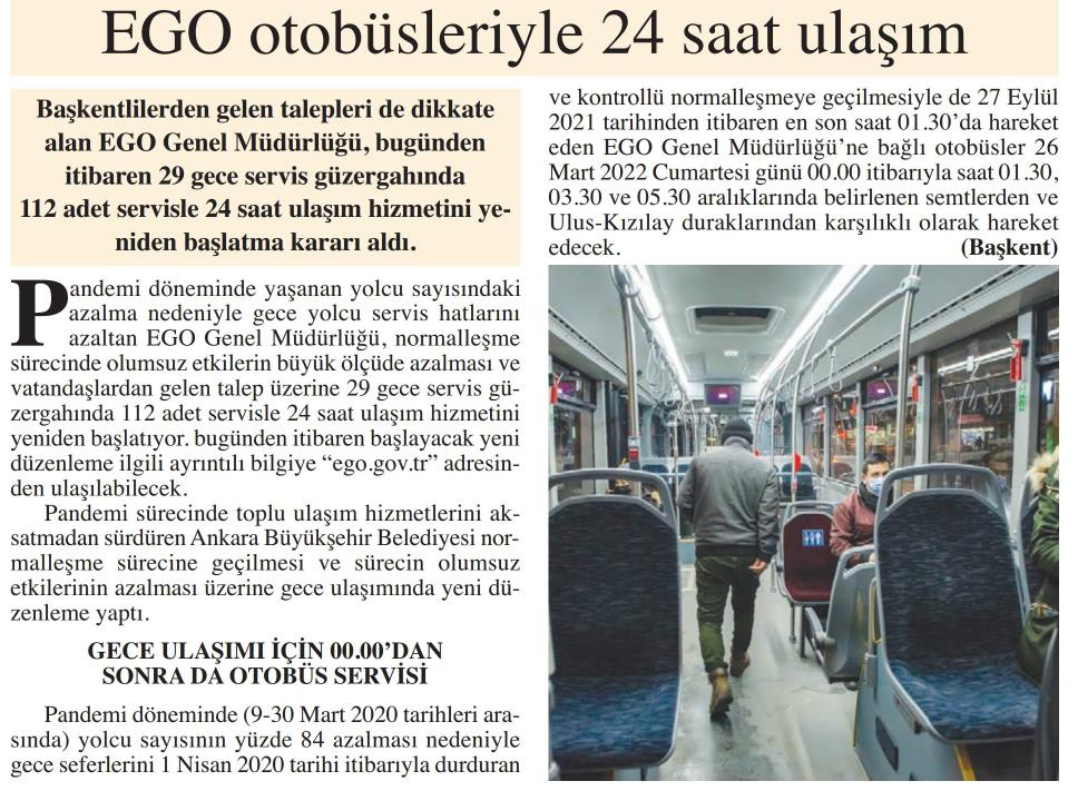 Başkent Gazetesi / 26.03.2022 EGO otobüsleriyle 24 saat ulaşım