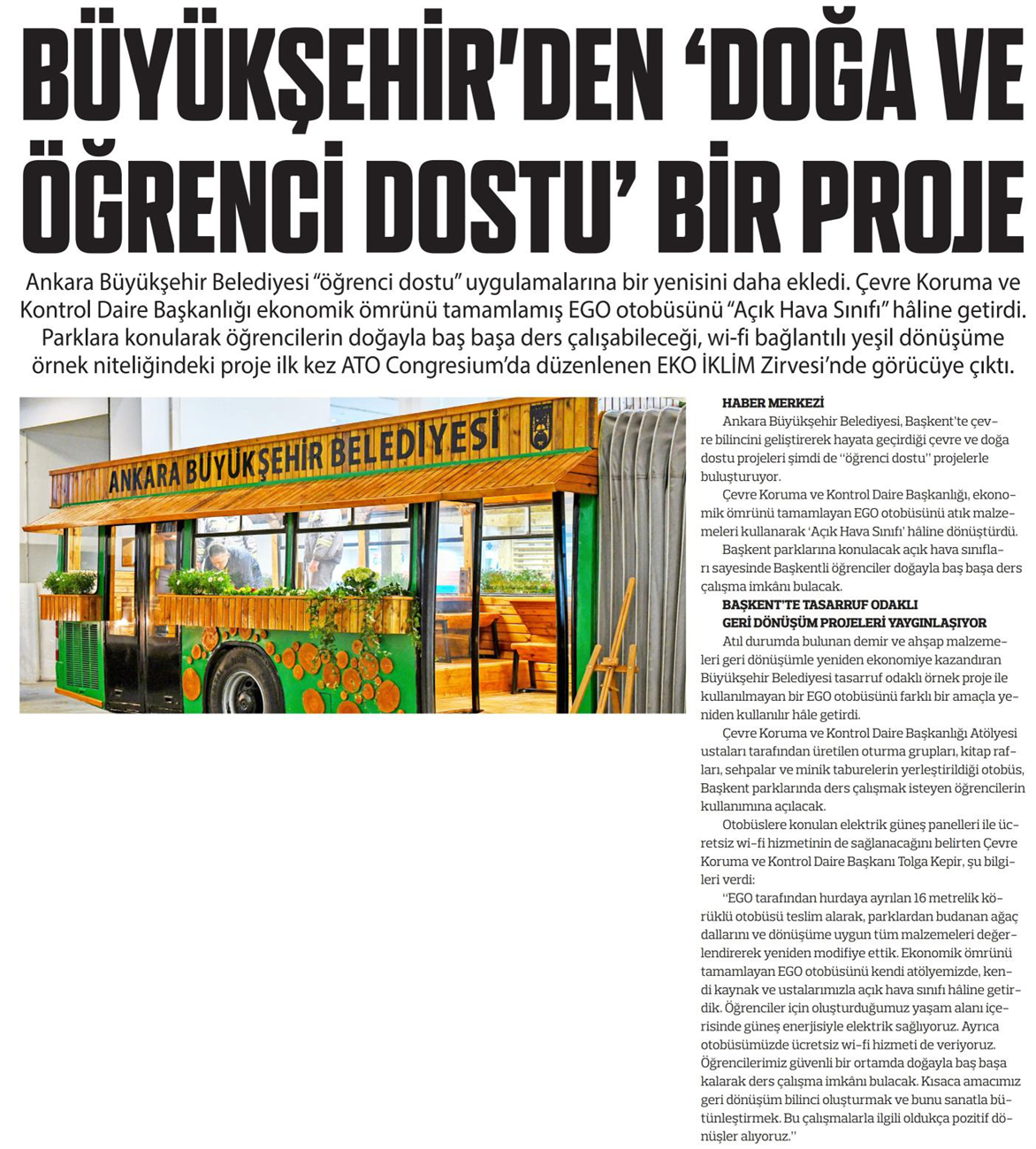 Başkent Gazetesi / 05.04.2022 ABB'den ulaşıma otobüs desteği