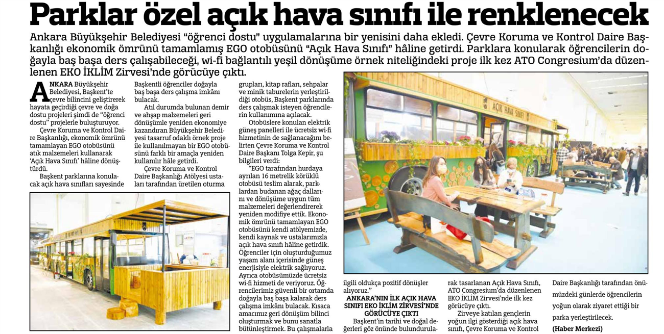 Güçlü Anadolu / 01.04.2022 Parklar özel açık hava sınıfı ile renklenecek