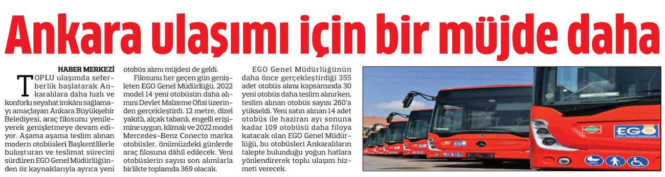 Hürriyet Ankara / 05.04.2022 Filoya 14 otobüs daha katılacak