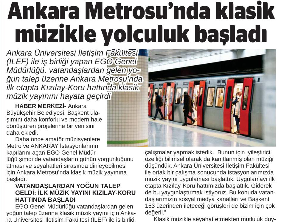 24 Saat / 21.01.2022 Ankara Metrosu'nda klasik müzikle yolculuk başladı