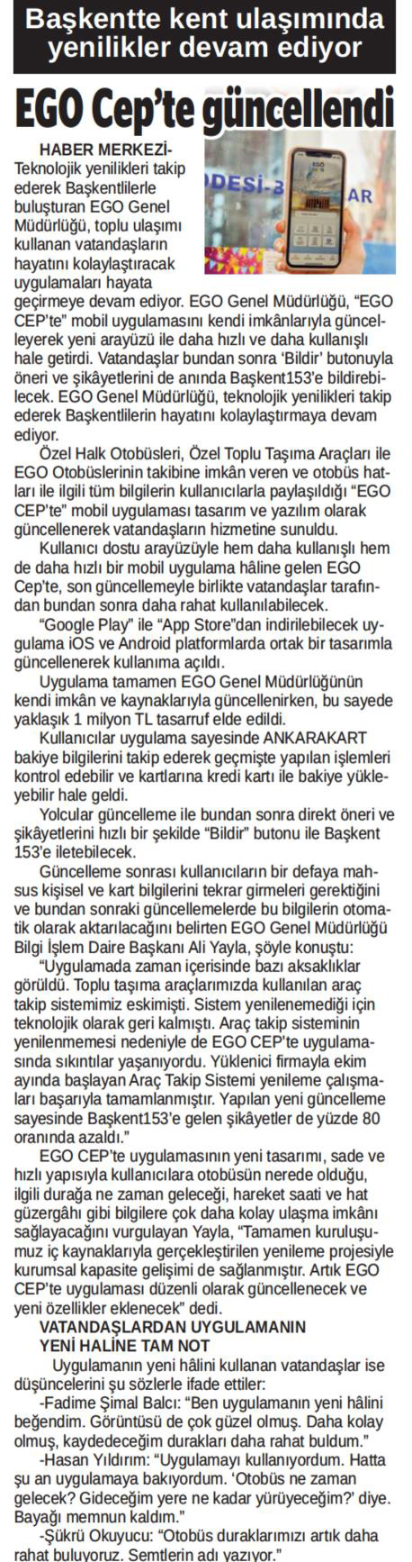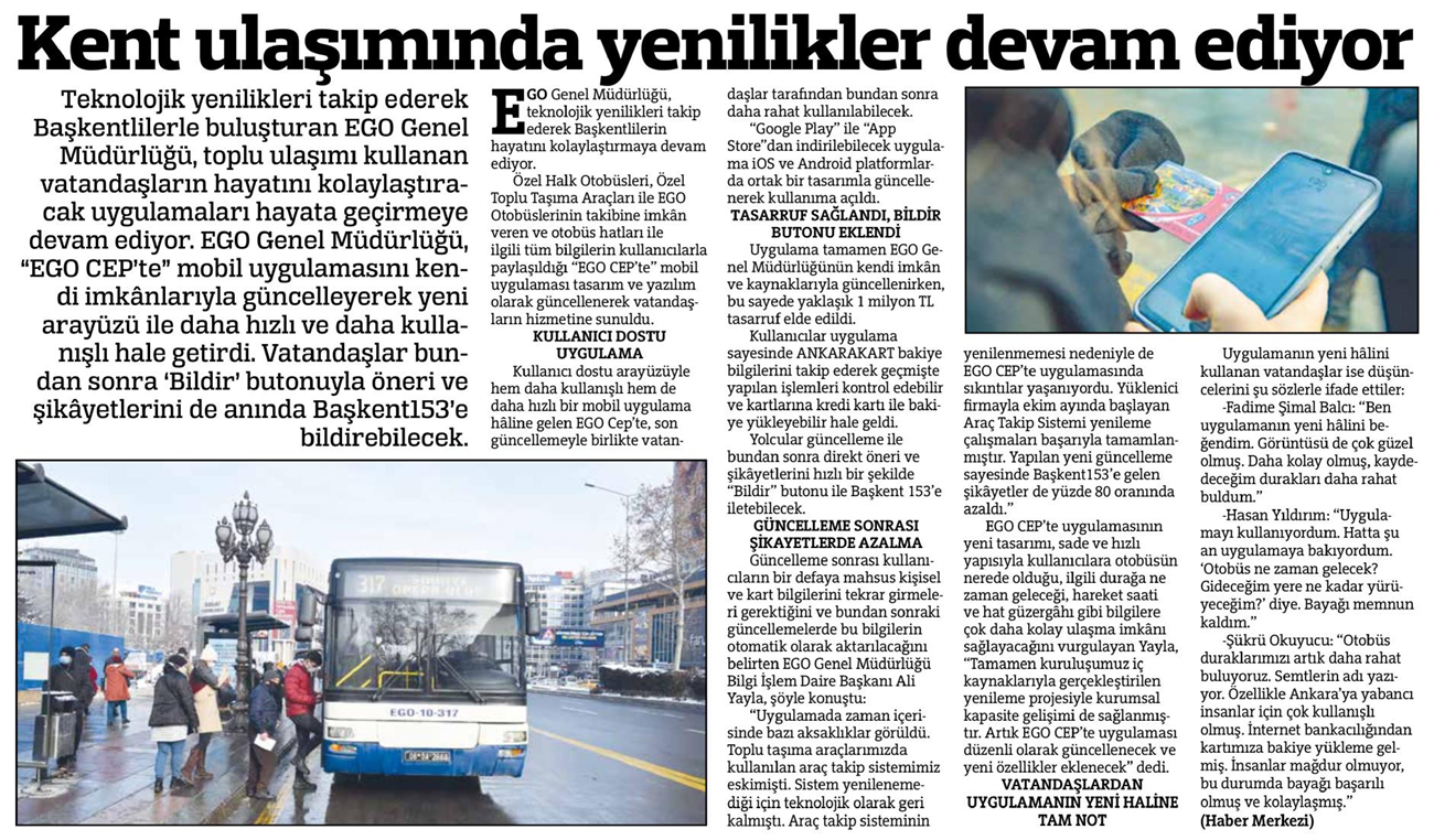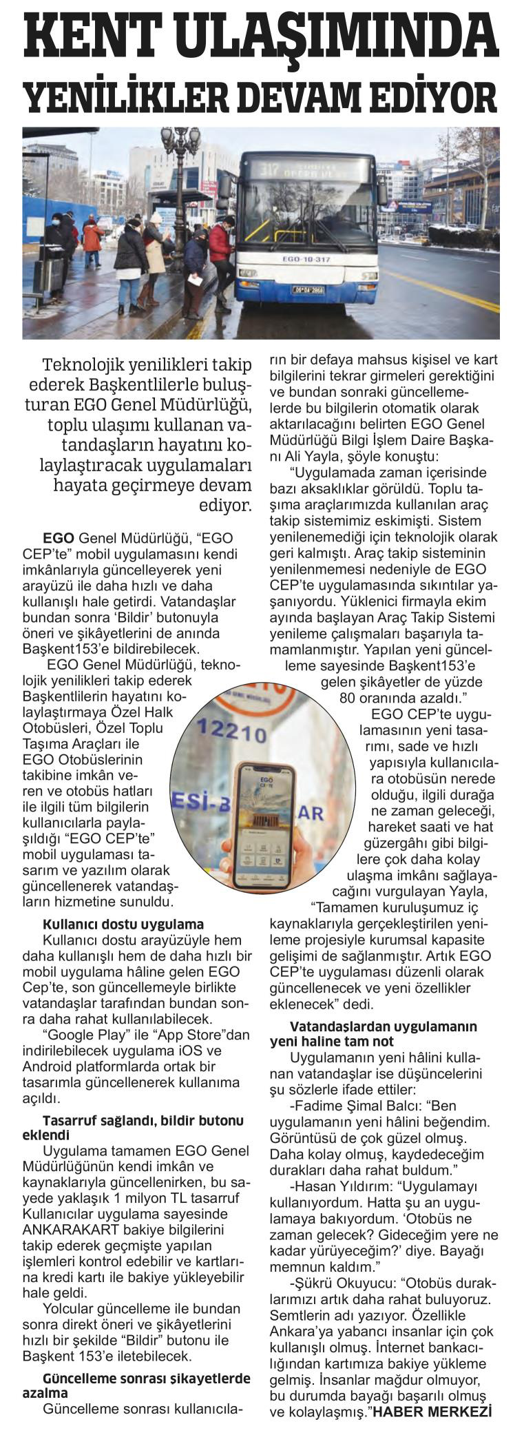 Hürriyet Ankara / 24.01.2022 EGO CEP'TE yenilendi