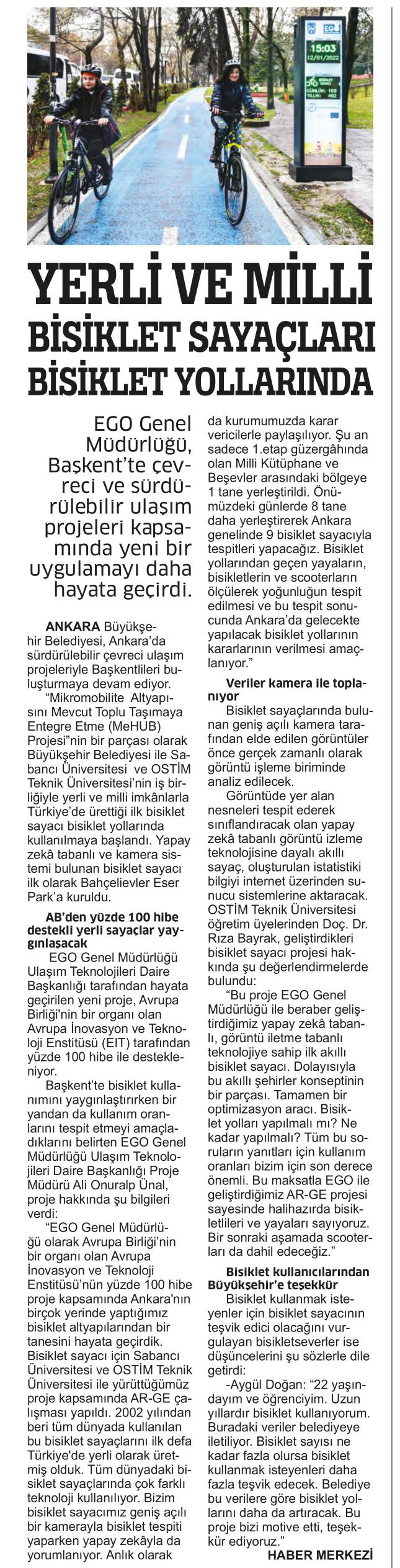 Hürriyet Ankara / 31.01.2022 İki teker sayacak